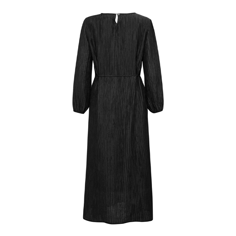 Petit Bari黑色绿色可选 圆领长袖连衣裙 系带收腰 气质简约风