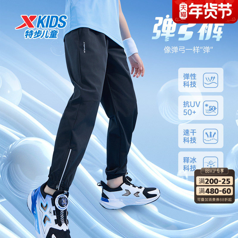 特步童装男童运动裤凉感防晒速干长裤夏季新款儿童防蚊裤户外透气