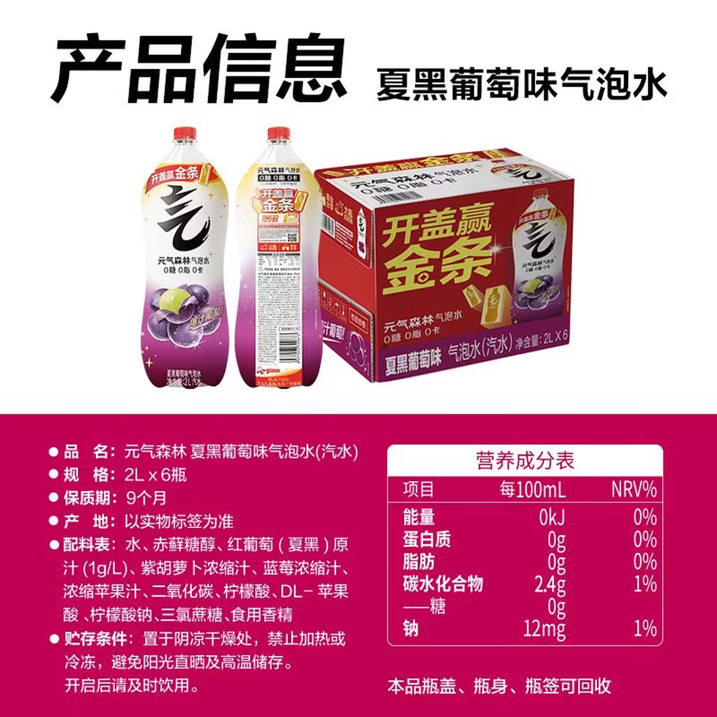 元气森林气泡水2L大瓶装0糖0脂0卡葡萄橙味柠檬聚会解腻白桃夏黑