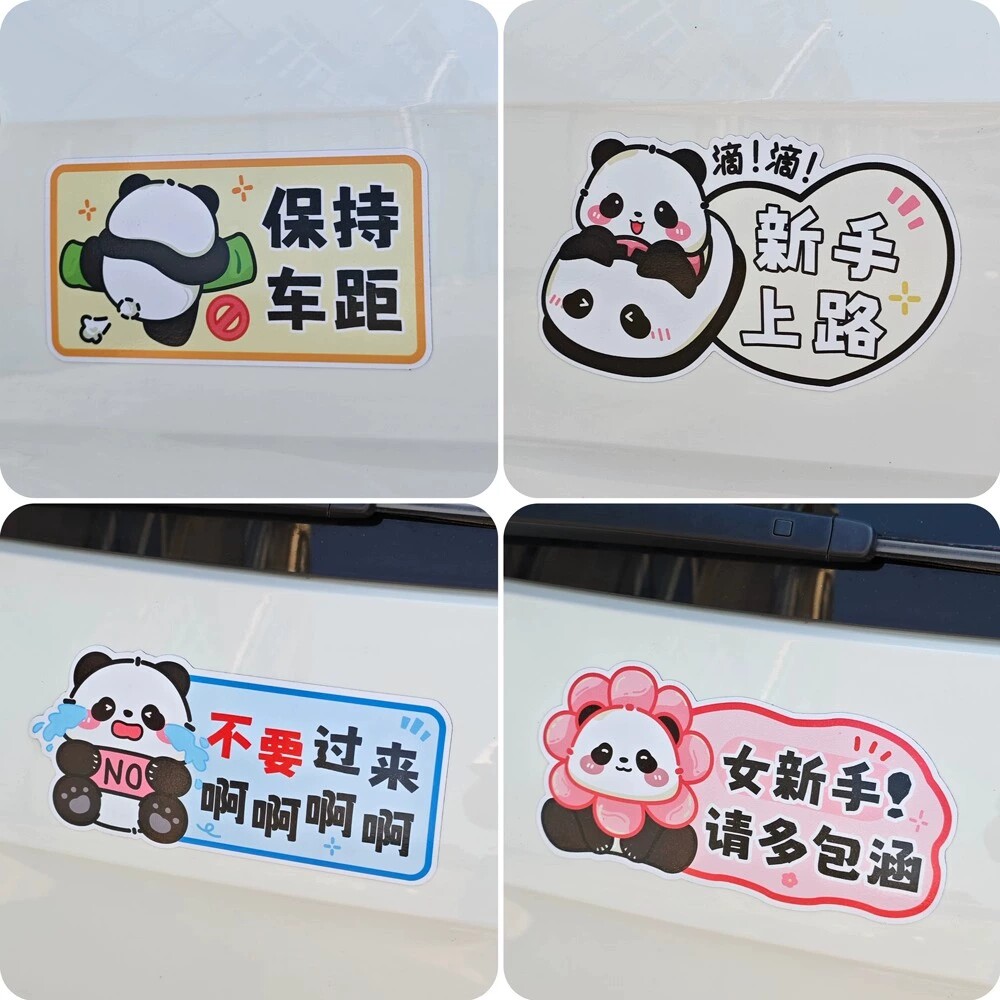 可爱熊猫实习标个性车贴卡通新手上路女司机保持车距搞笑车身贴纸
