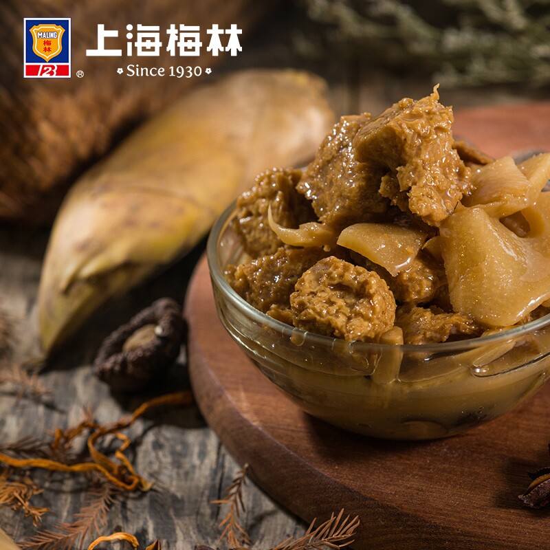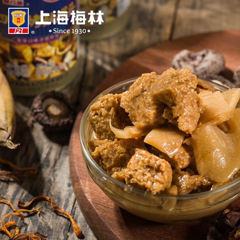 梅林四鲜烤麸罐头354g5罐装上海面筋开罐即食下饭菜方便速食*特产