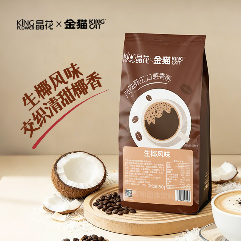 晶花生椰拿铁三合一速溶咖啡粉咖啡奶茶店原材料家用商用袋装800g