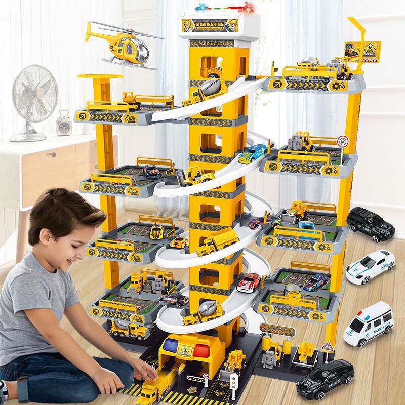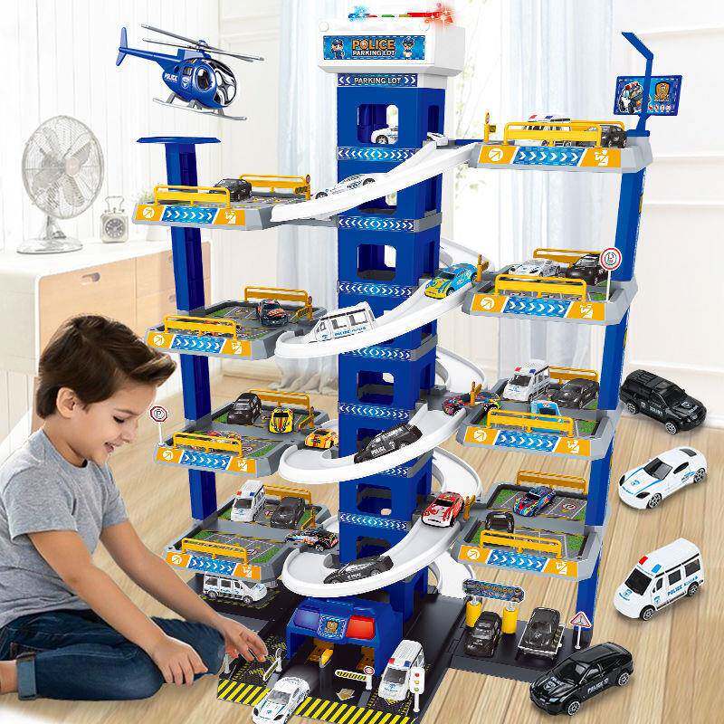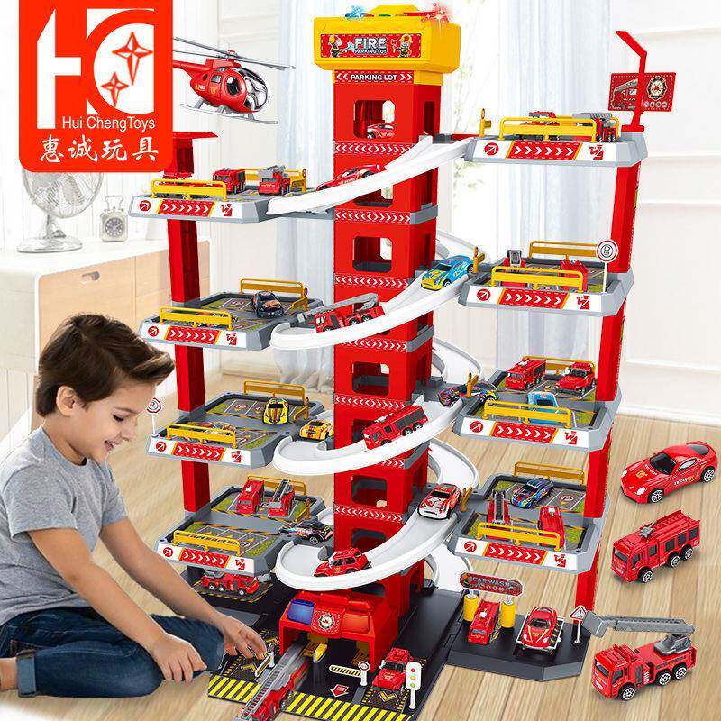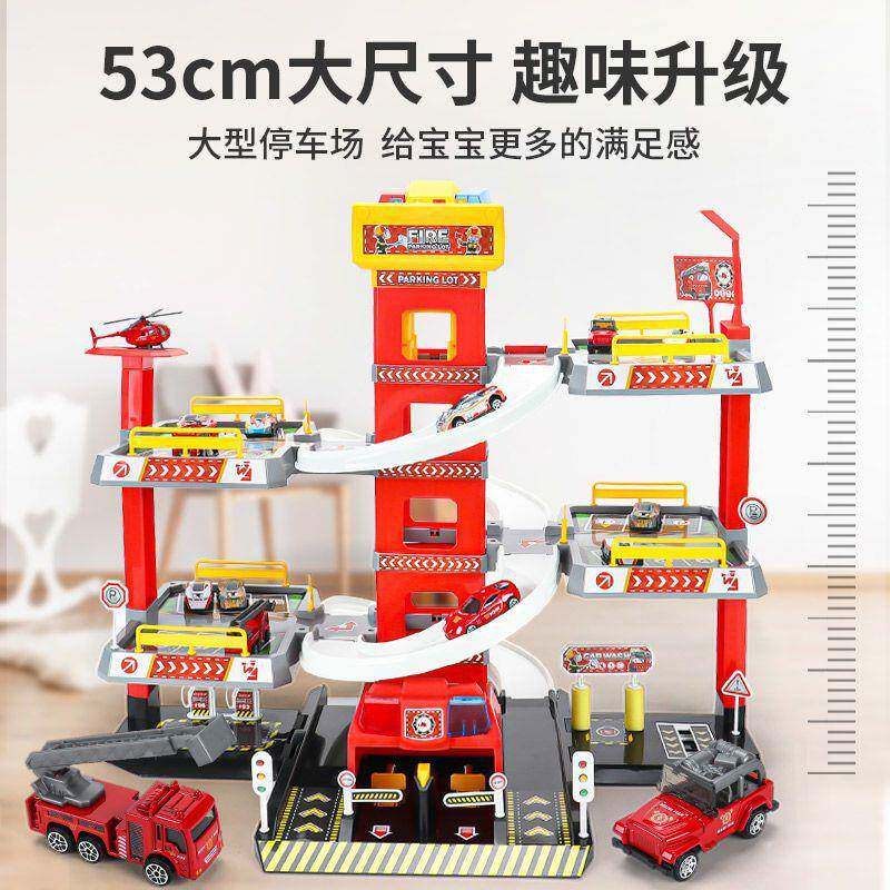 儿童益智3-4男孩6岁轨道车电动停车场玩具大楼合金小汽车消防警车