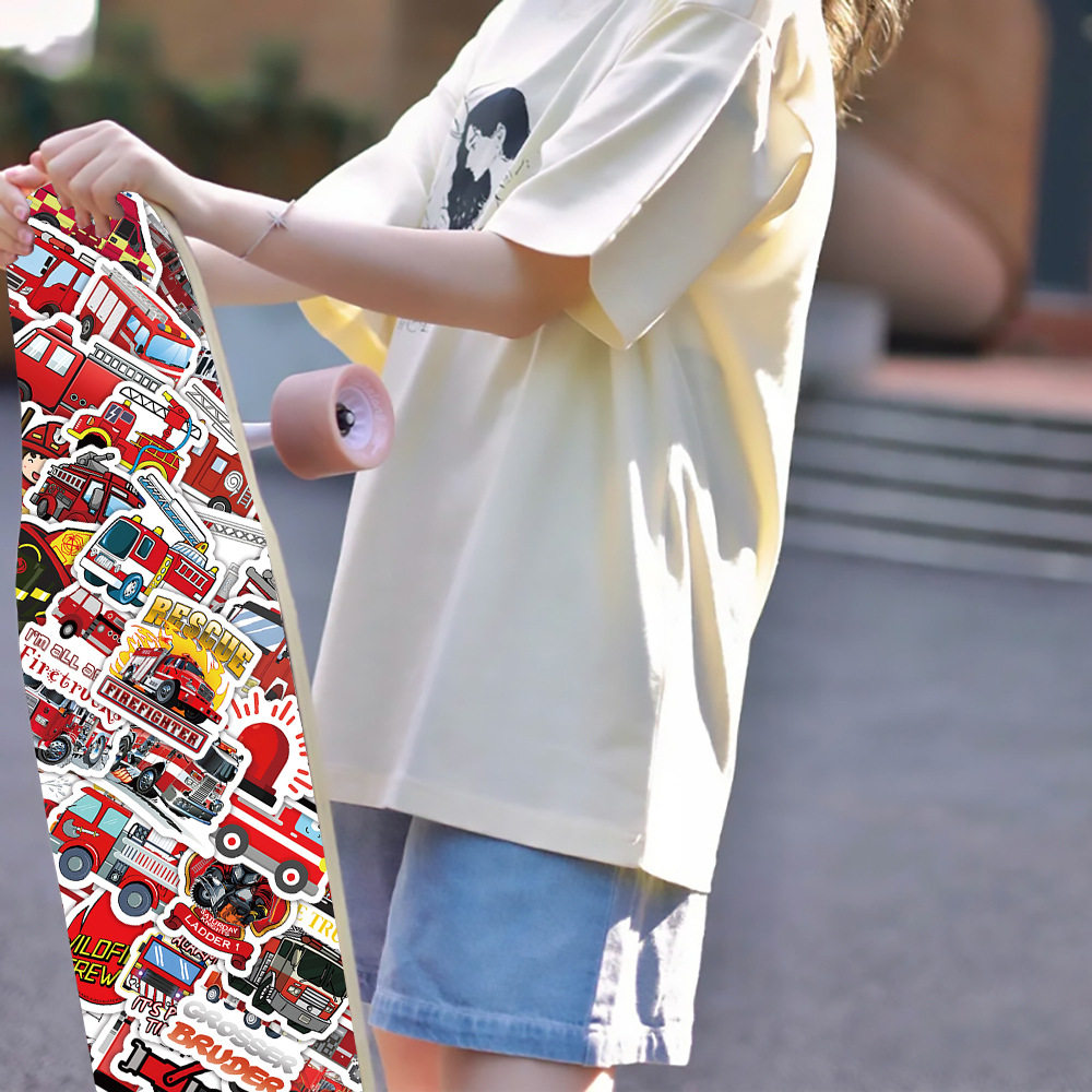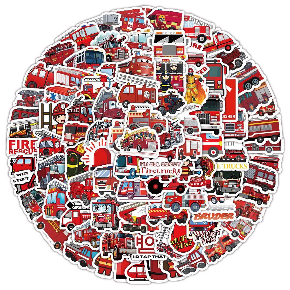 100张卡通消防车贴纸卡通儿童早教涂鸦装饰手机壳电脑防水贴画diy