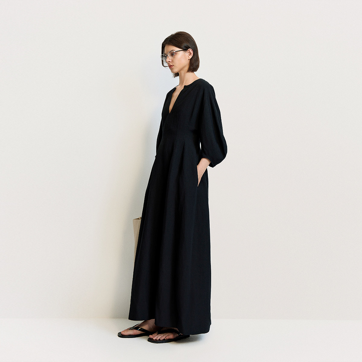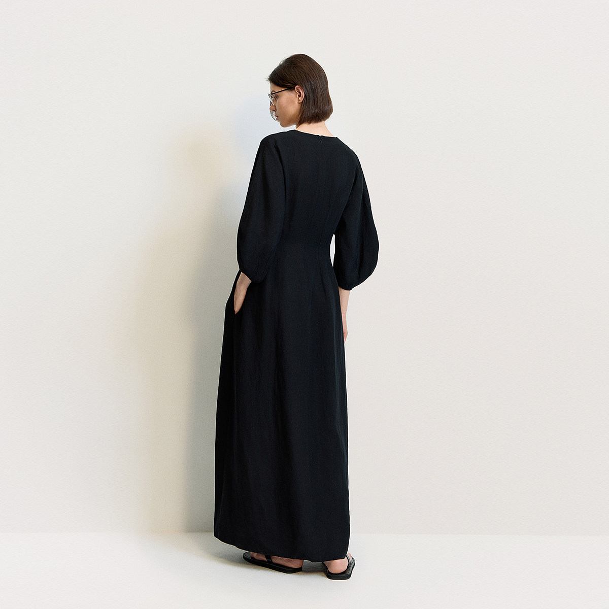 COCOBELLA简约气质黑色收腰极简风连衣裙女优雅短袖长裙FR3033-2