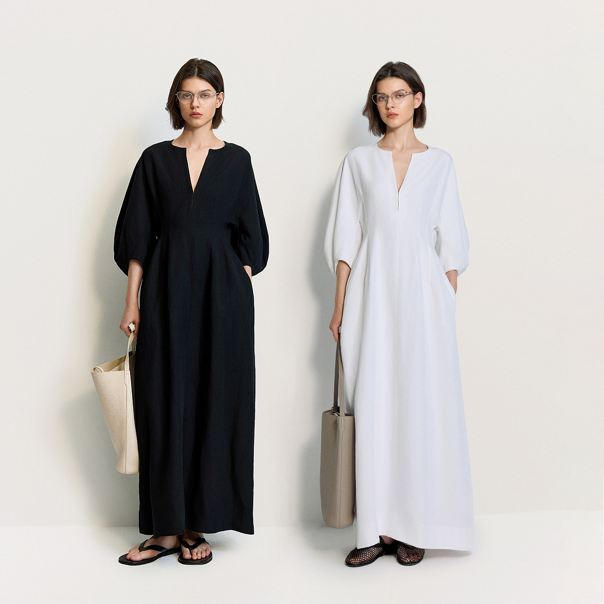 【季末折扣】欧时力 收腰中袖连衣裙长裙灯笼袖法式2025夏季新品