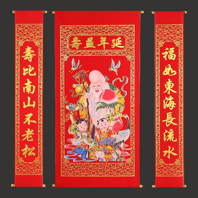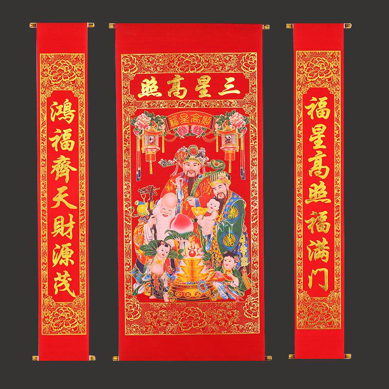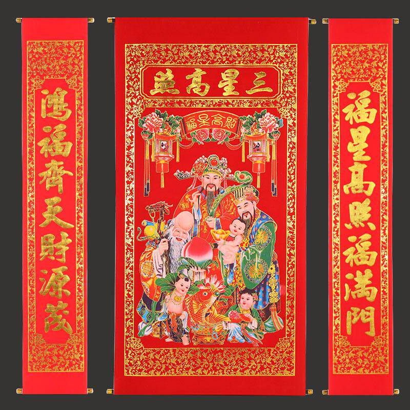 农村堂屋三星高照中堂画新年乔迁寿星挂画福禄寿福星高照客厅挂画