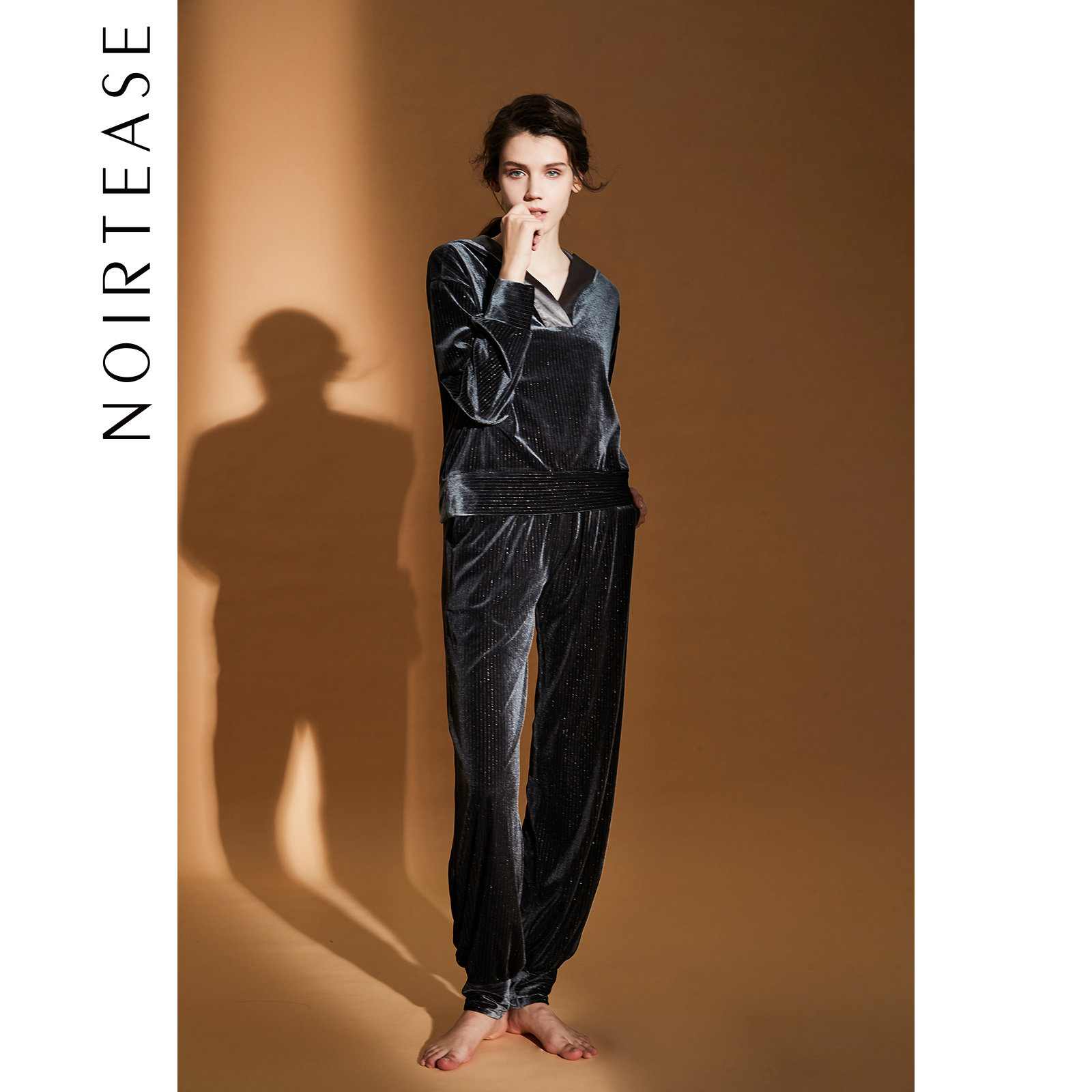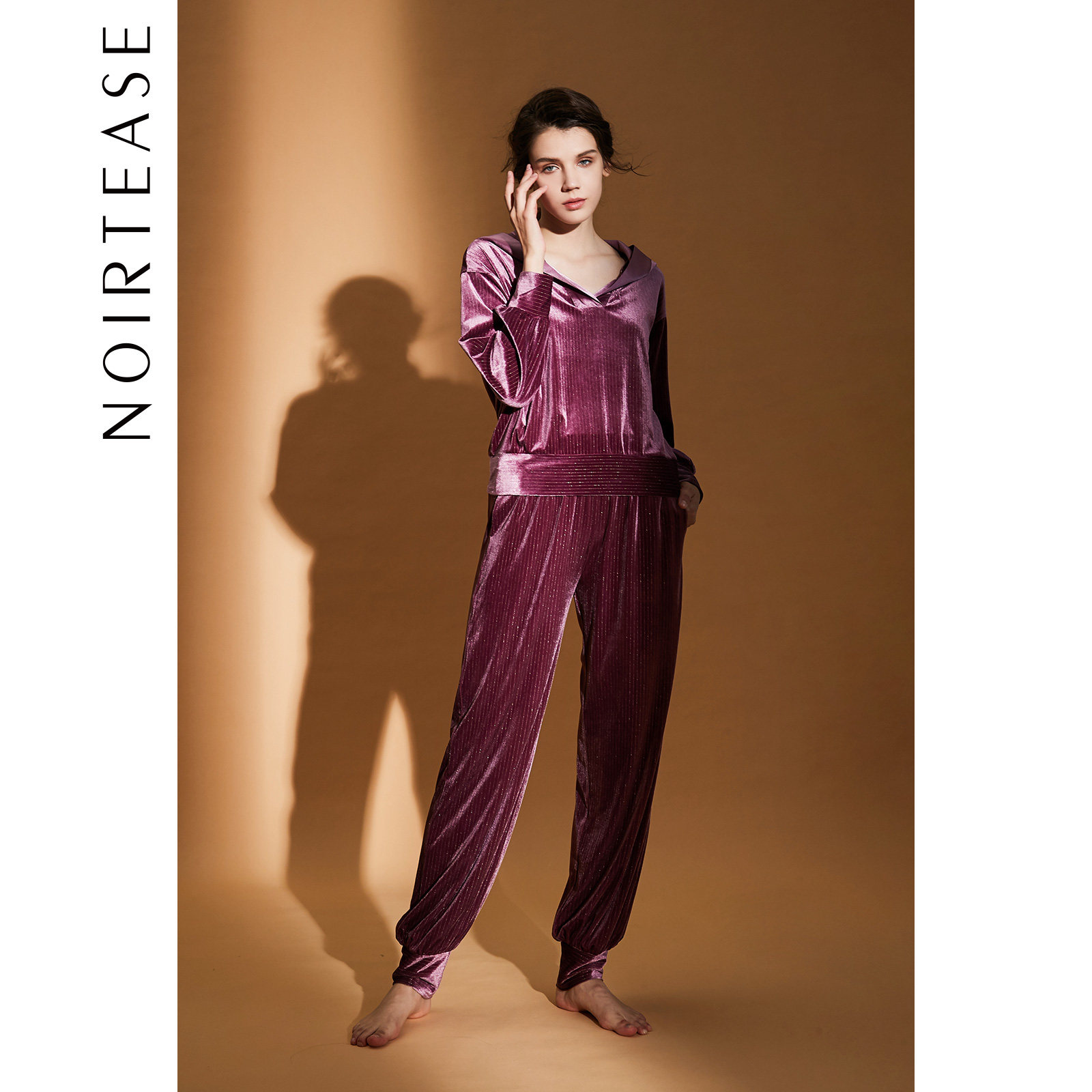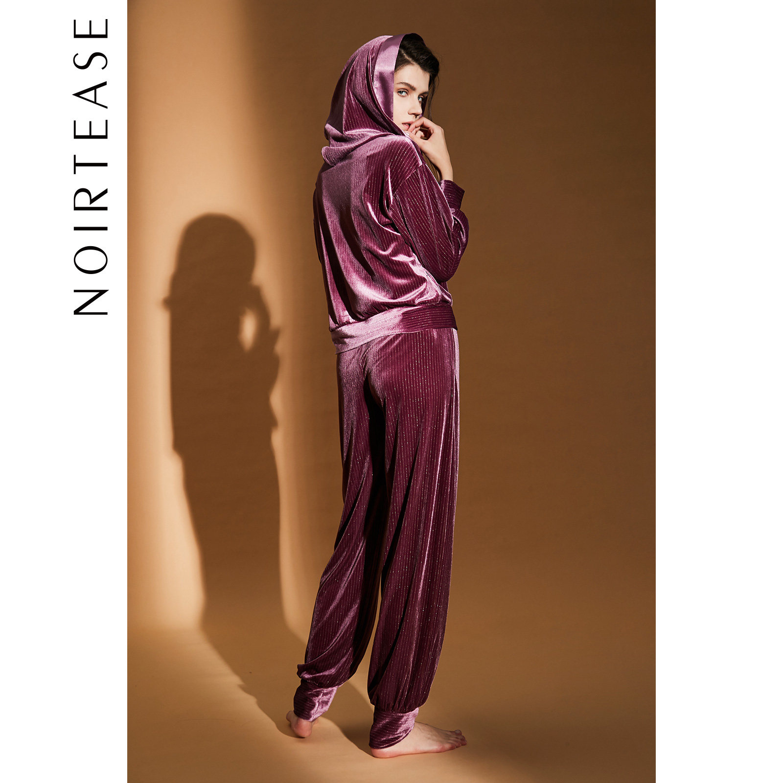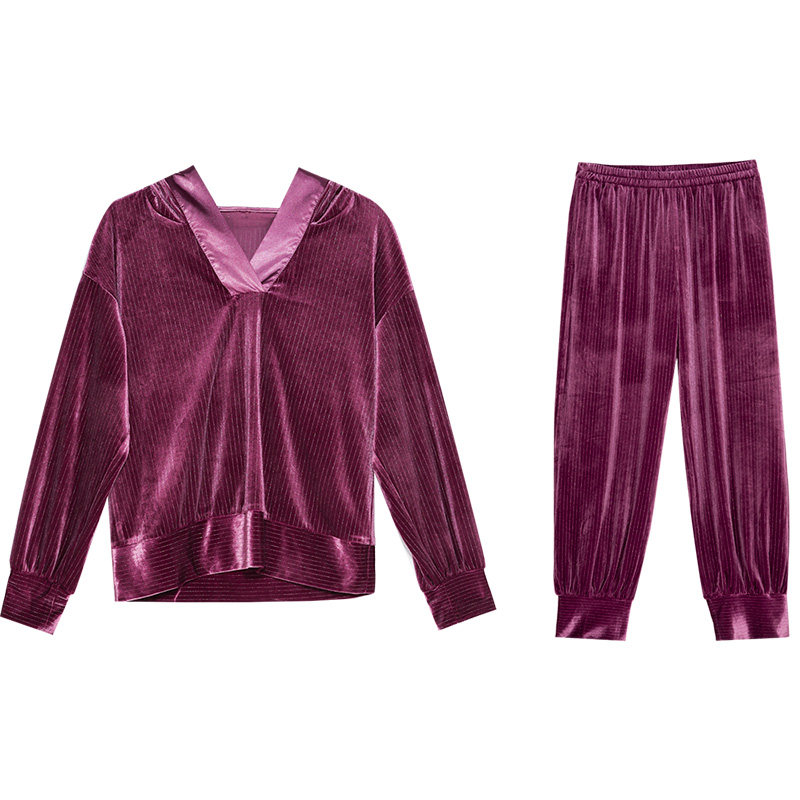 NoirTease奈黎诗春秋女士丝绒可外穿连帽长袖家居服套装秋非睡衣