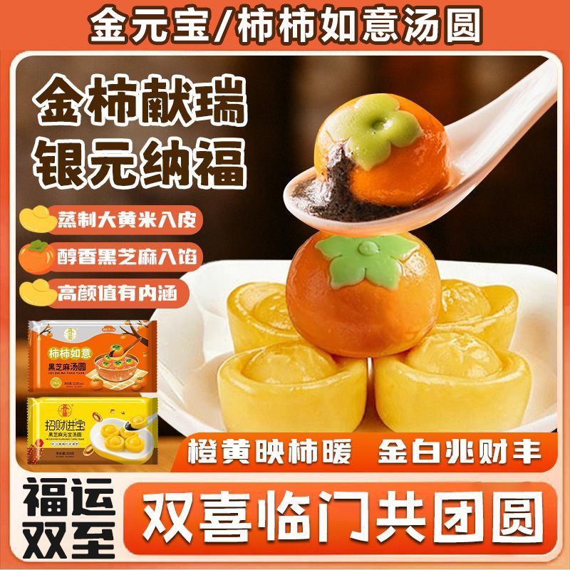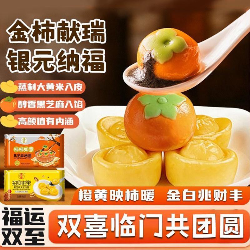 招财元宝汤圆多种口味柿柿如意黑芝麻流心大黄米元宝龙井小元宵