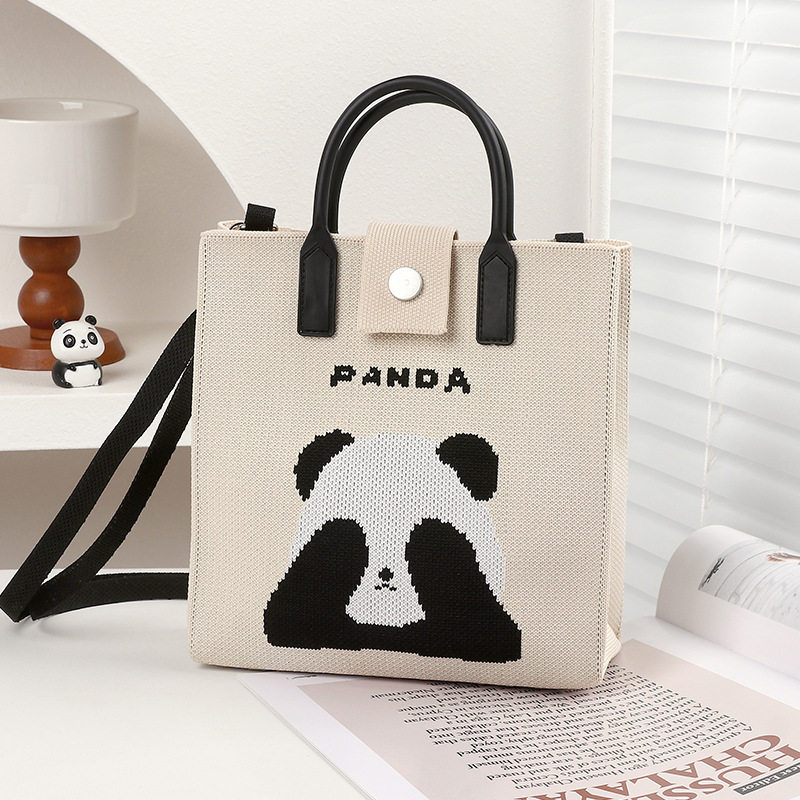 新款成都熊猫针织包加厚大容量女通勤单肩包学生手提袋百搭托特包
