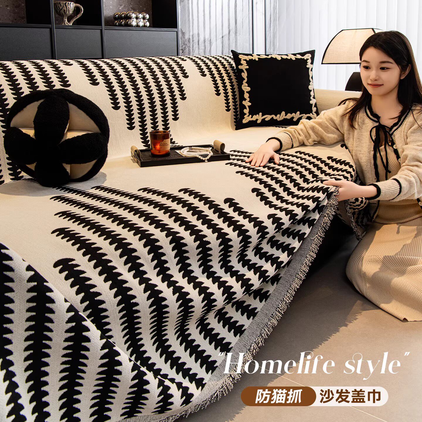 敏顺夏季沙发盖布凉感轻奢艺术防猫抓沙发套罩防滑沙发垫2025新款