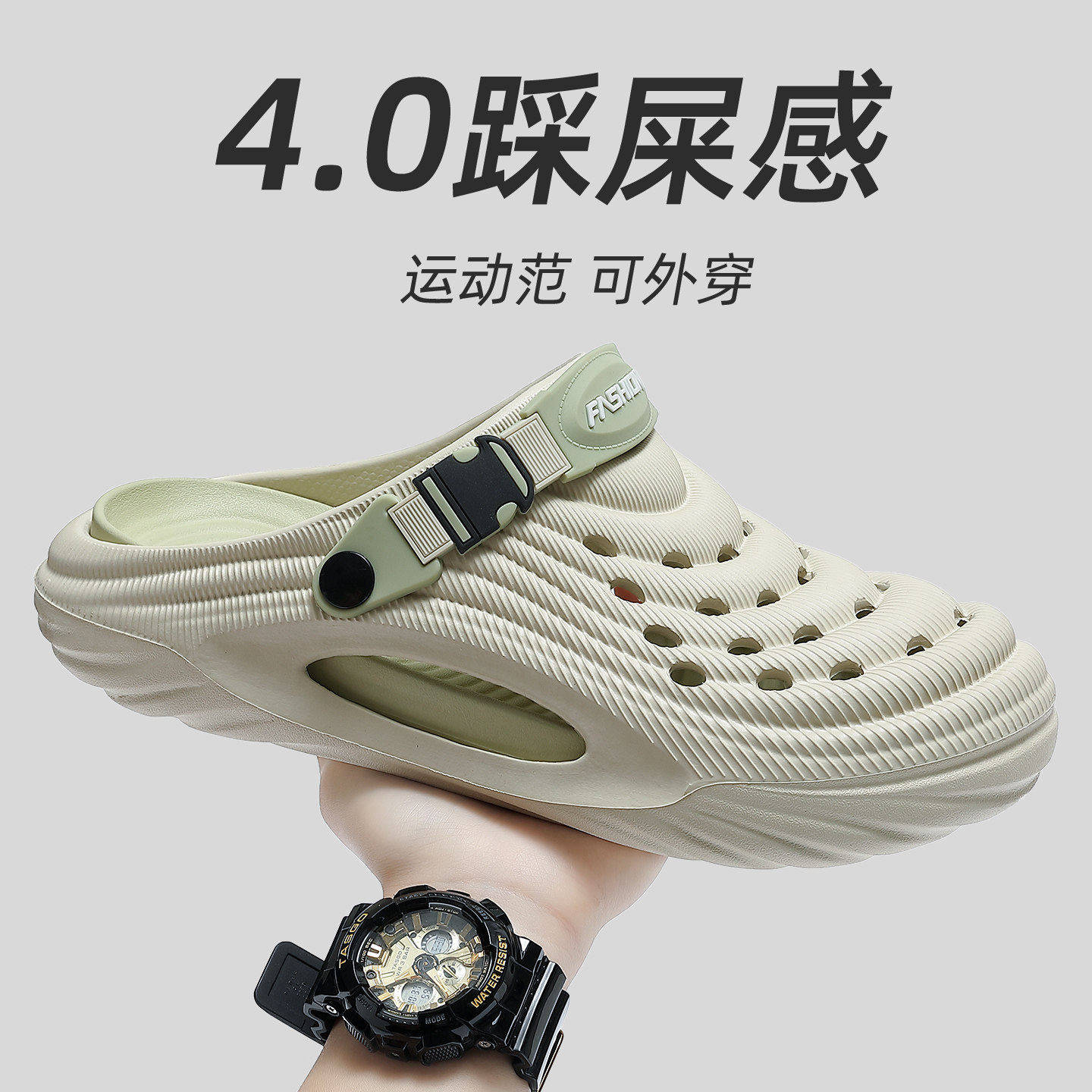 洞洞鞋男士防滑夏季2025新款踩屎感增高沙滩鞋包头户外凉鞋女外穿