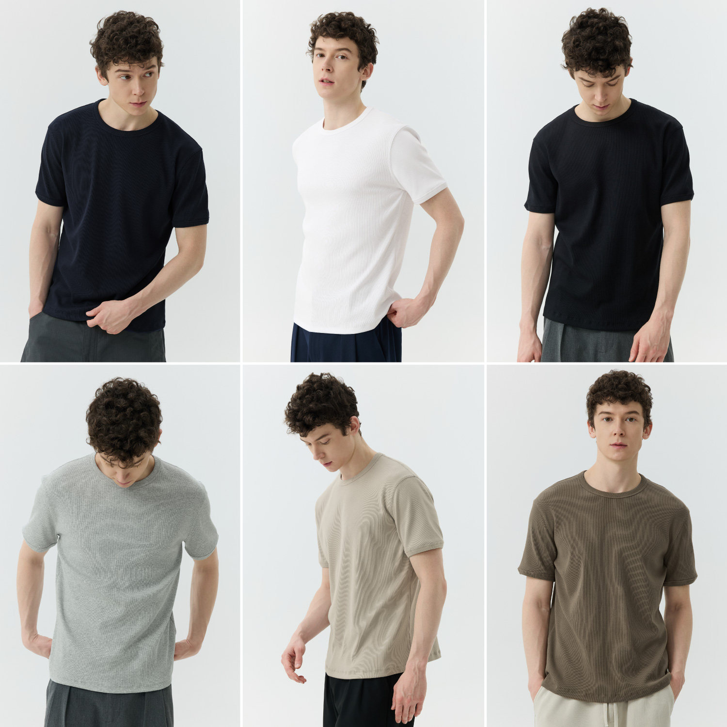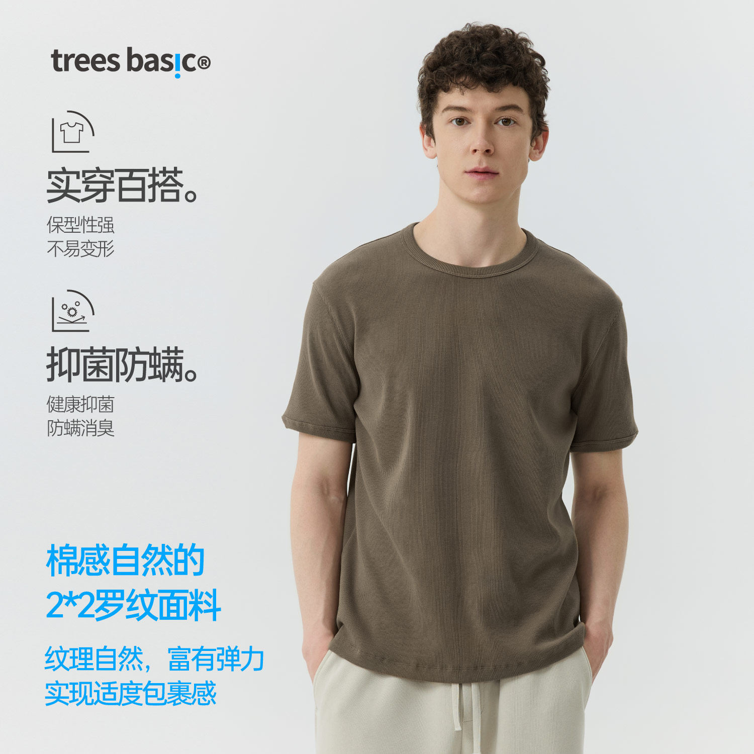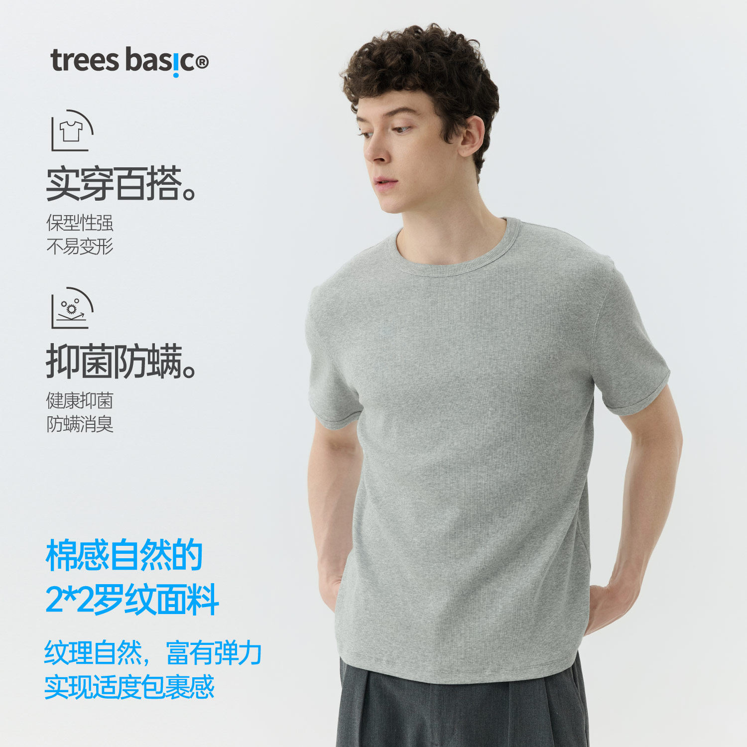 TreesBasic男款罗纹面料短袖T恤(修身版型)纯色修身短袖舒适款