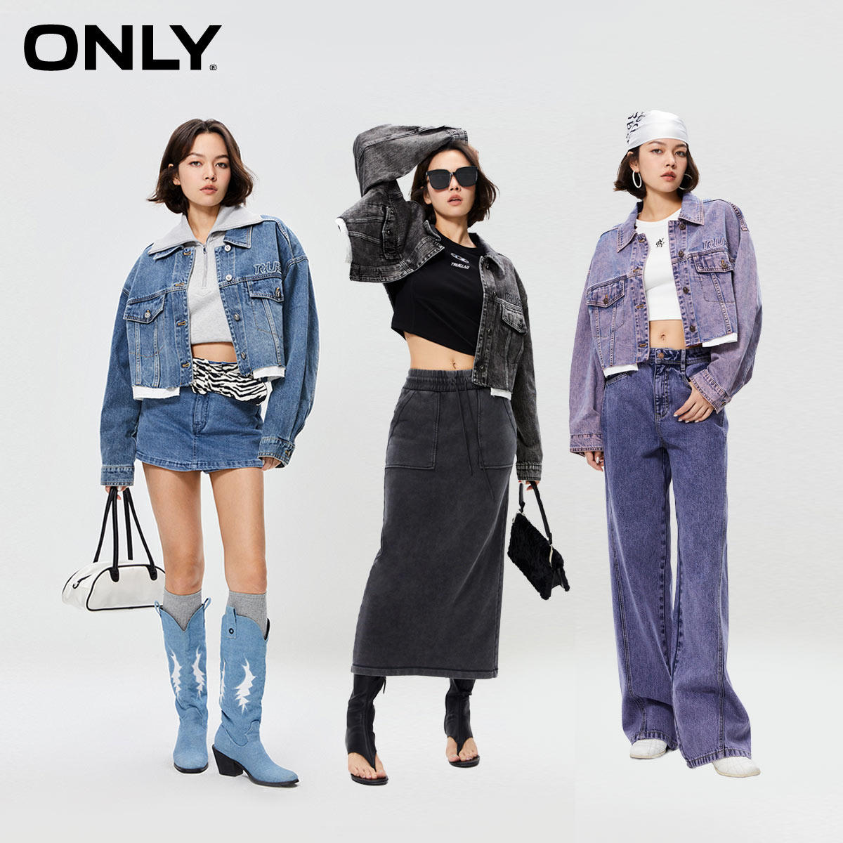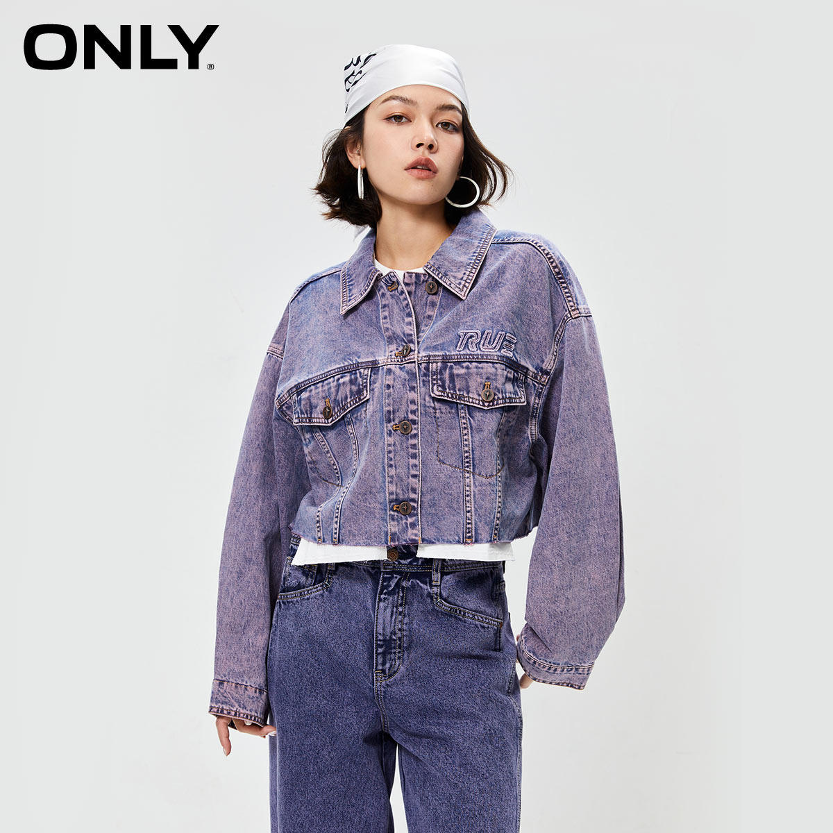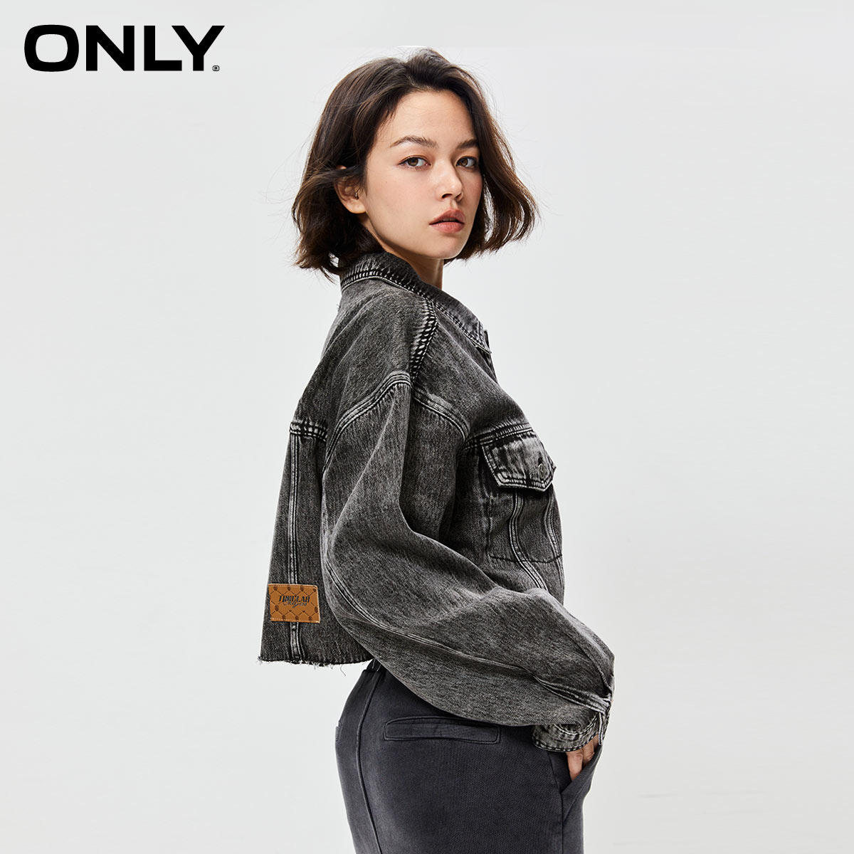 【ONLY奥莱】春季新款时尚翻领宽松短款做旧牛仔外套女