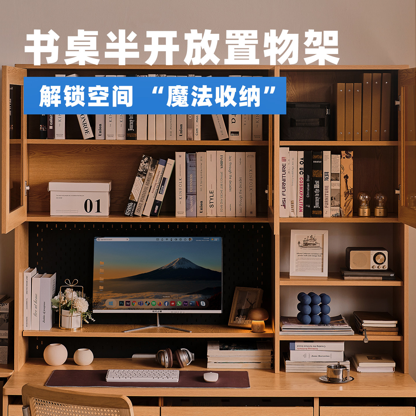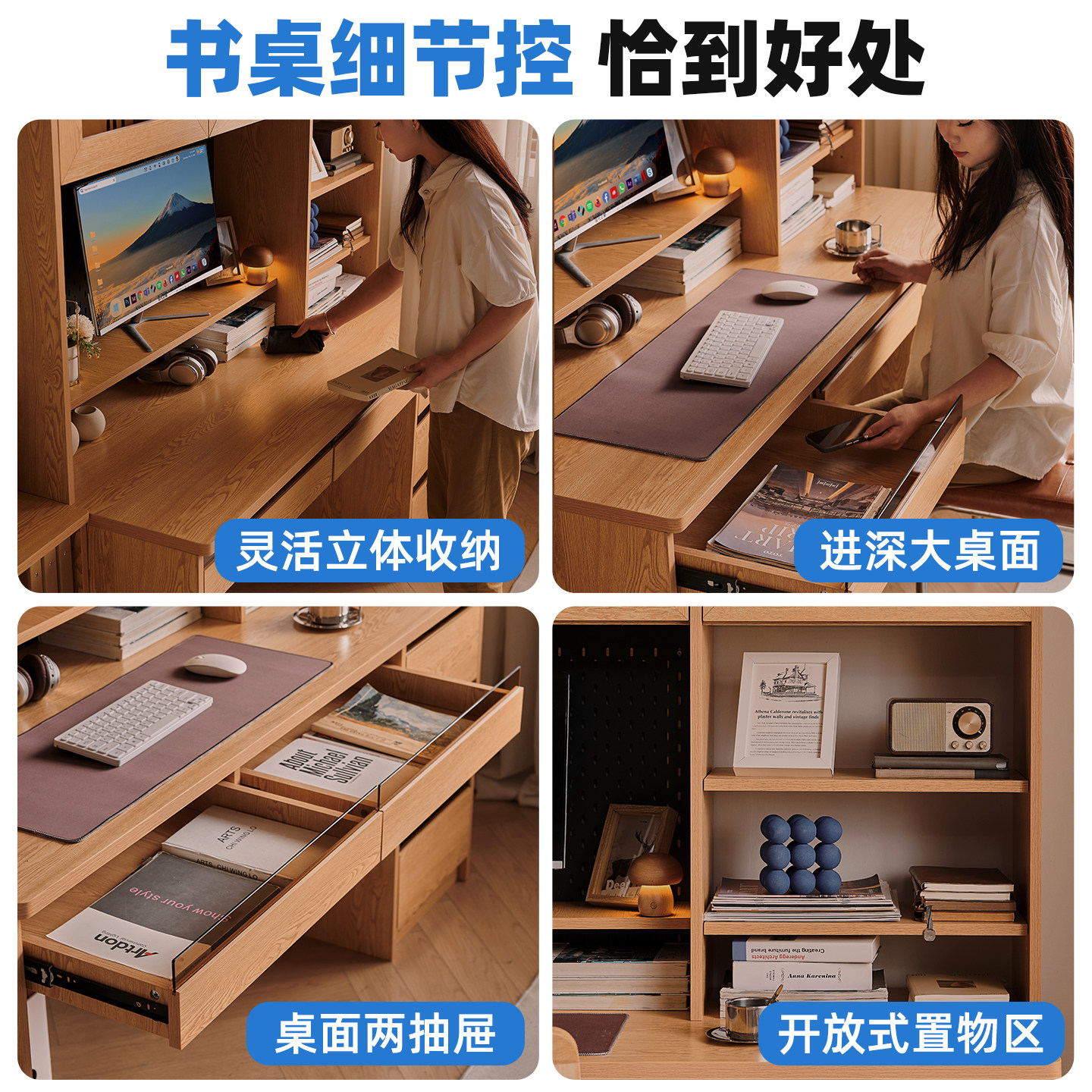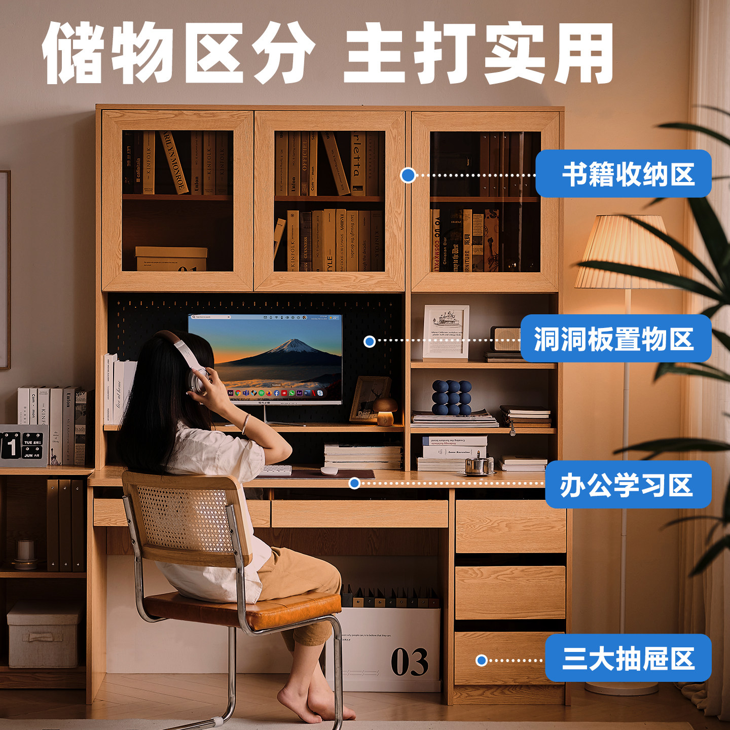 木兜家具万象书桌学生家用电脑台式桌子卧室书桌书柜一体靠墙书台
