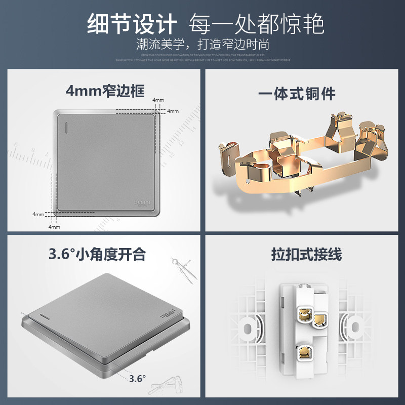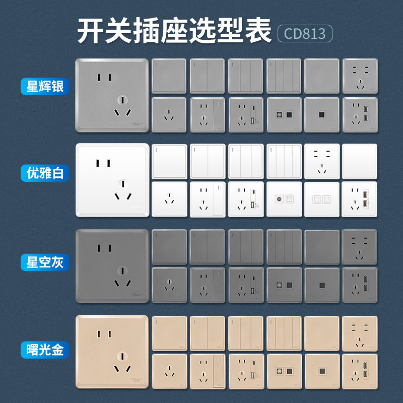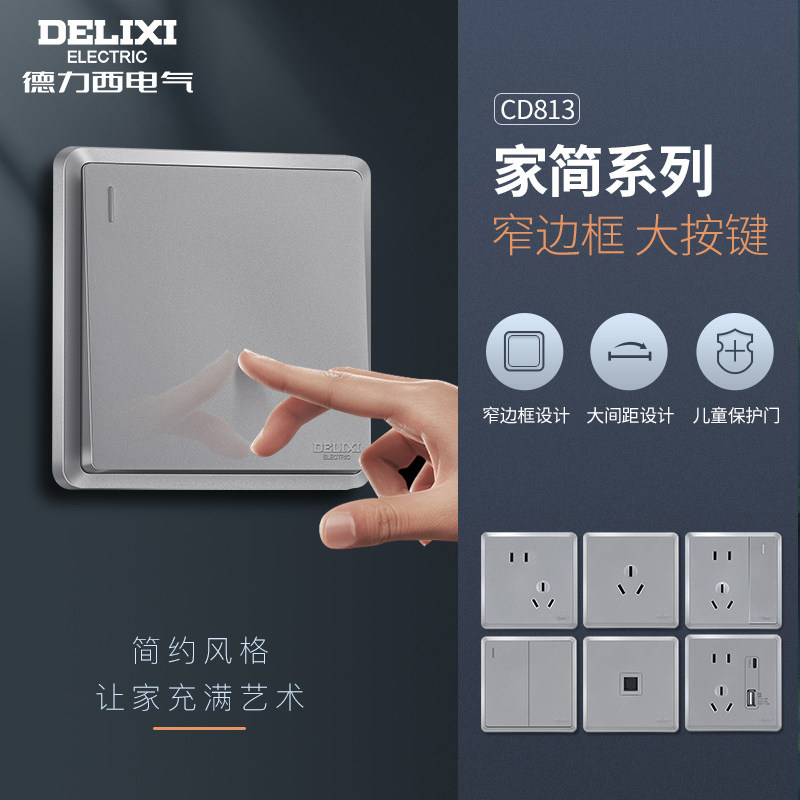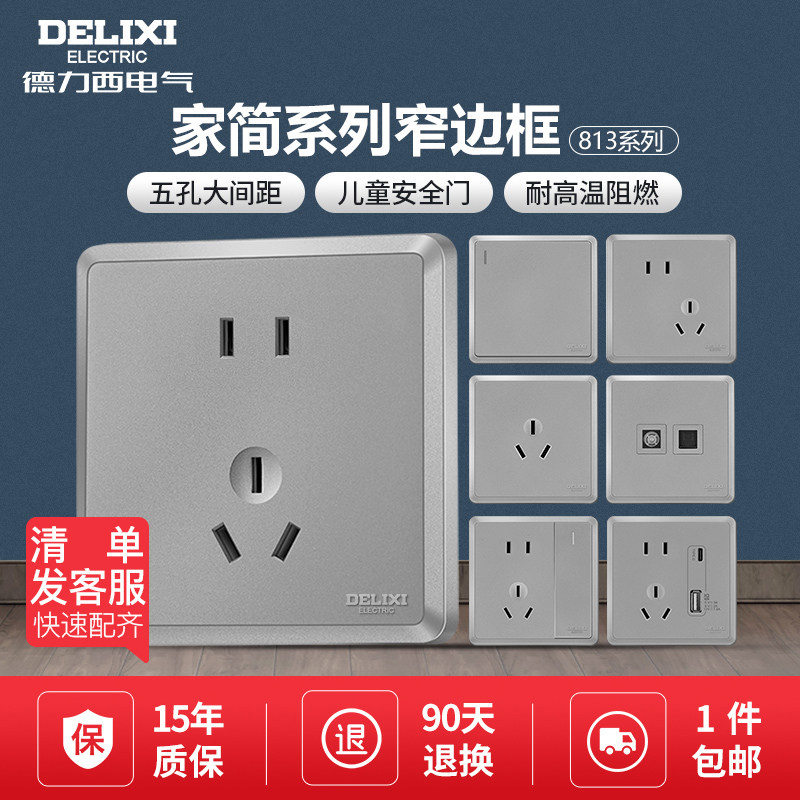 德力西开关插座面板一开双控五孔暗装家用86型16A空调插座813银