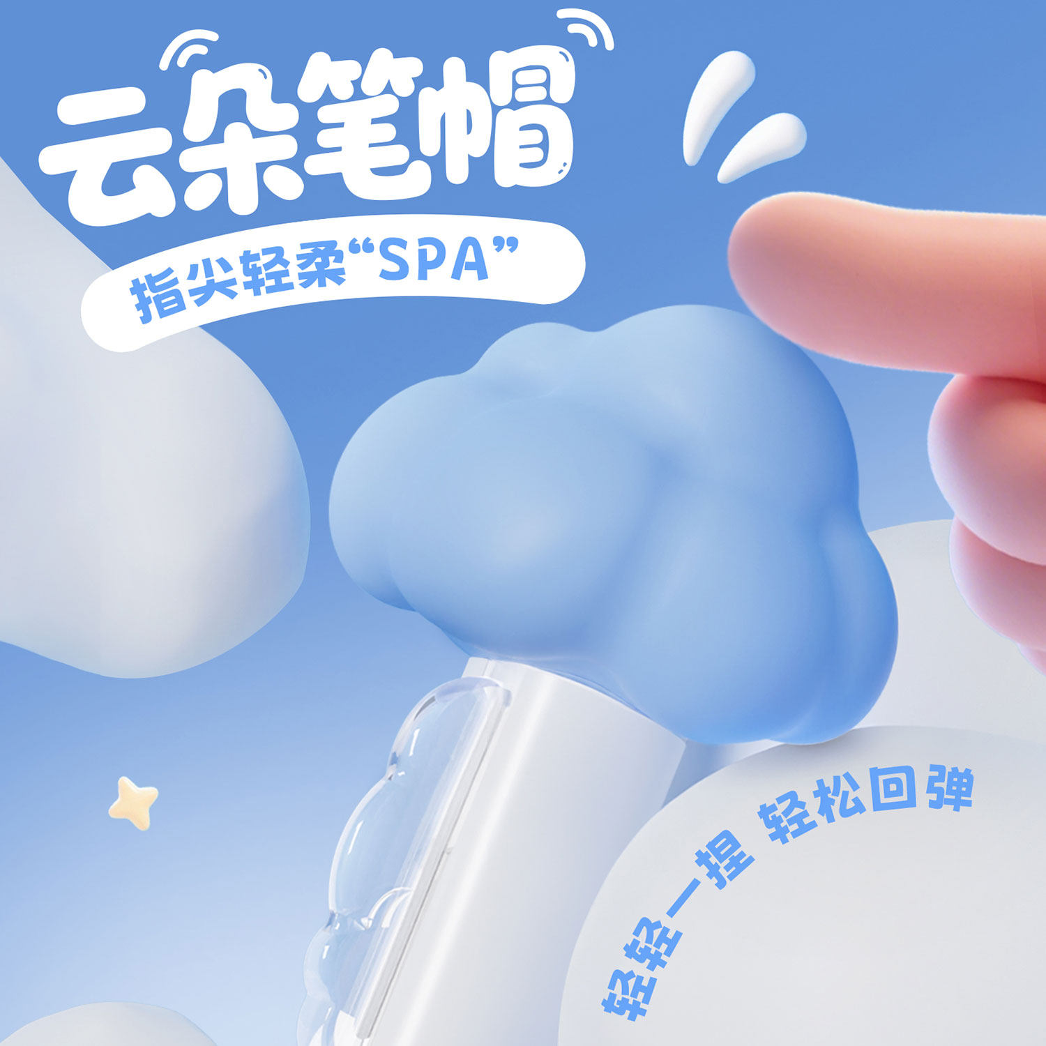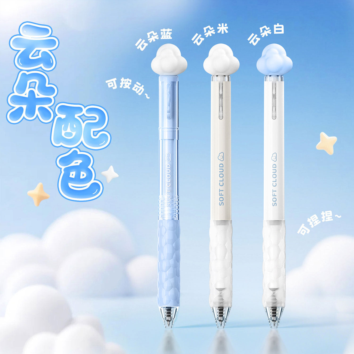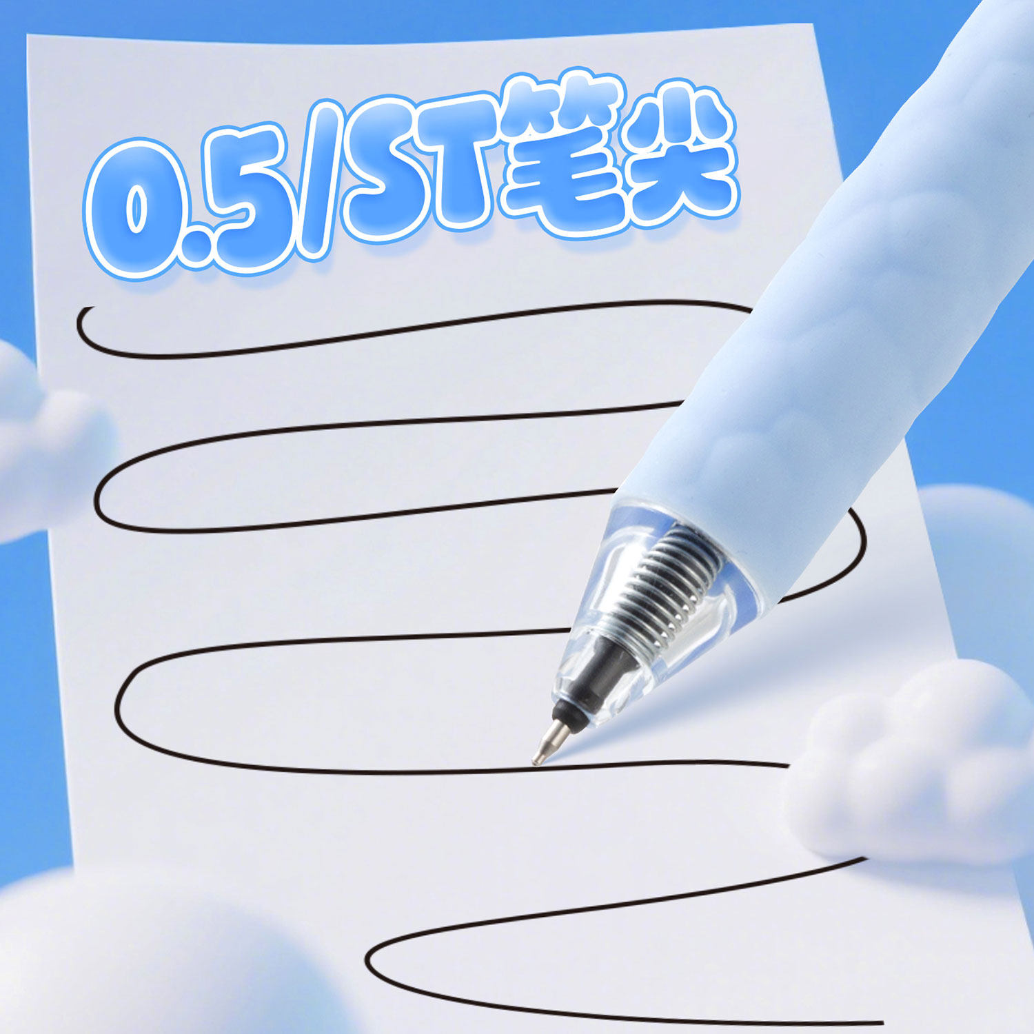 爱好学生中性笔0.5st针管笔棉花糖天空蓝白色云朵笔按动水笔黑笔芯笔握柔软舒适书写顺滑考试笔刷题笔转转笔