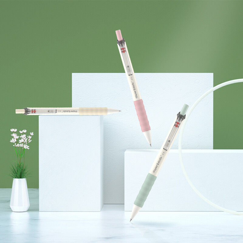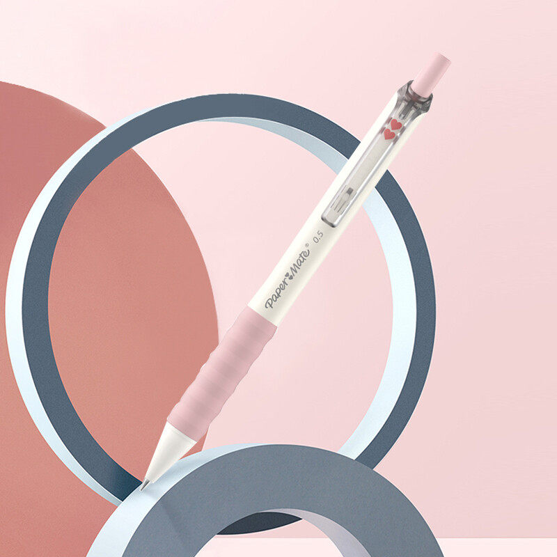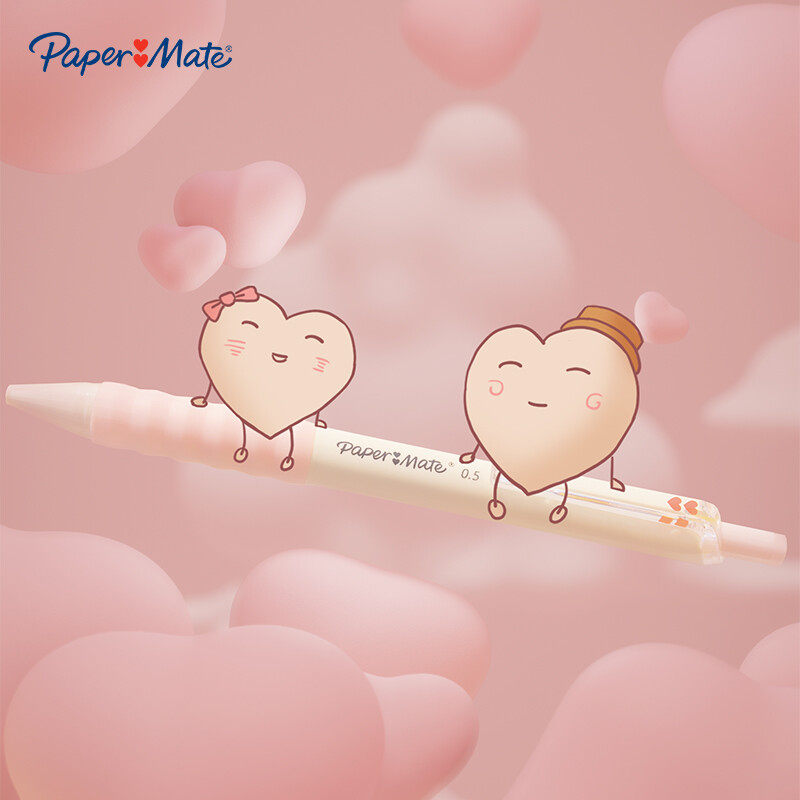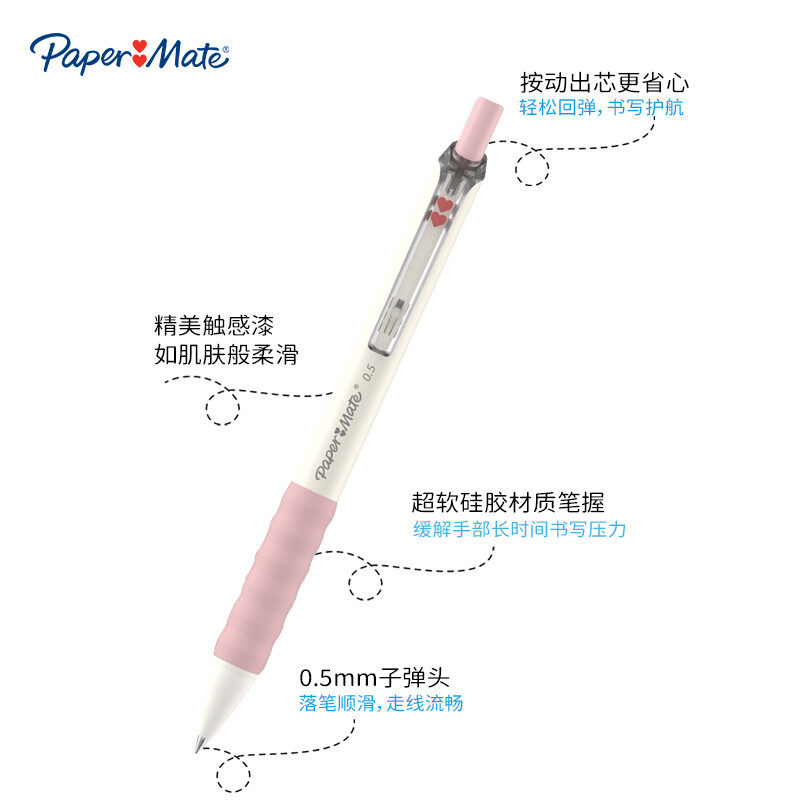 美国缤乐美(Papermate)心心笔按动式中性笔0.5mm黑色棉花糖系列可爱少女心初中学生笔软胶笔握