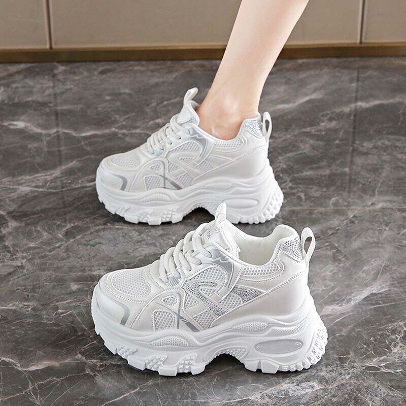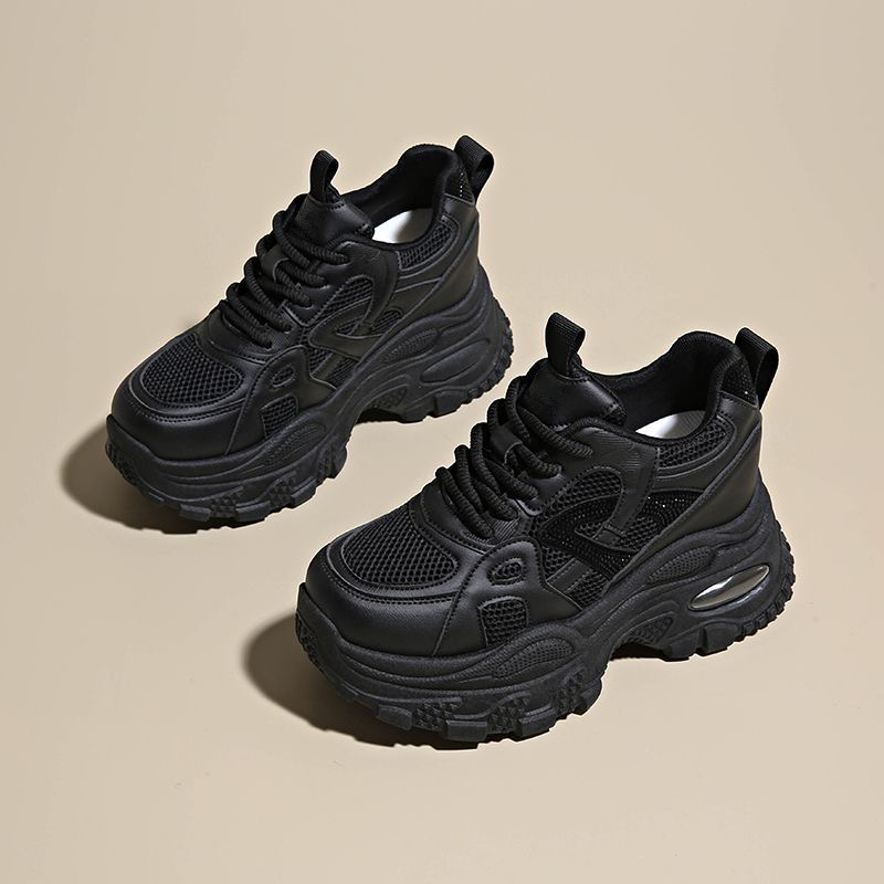 松糕厚底老爹鞋女小个子增高2026超火新款春季百搭黑色运动休闲鞋