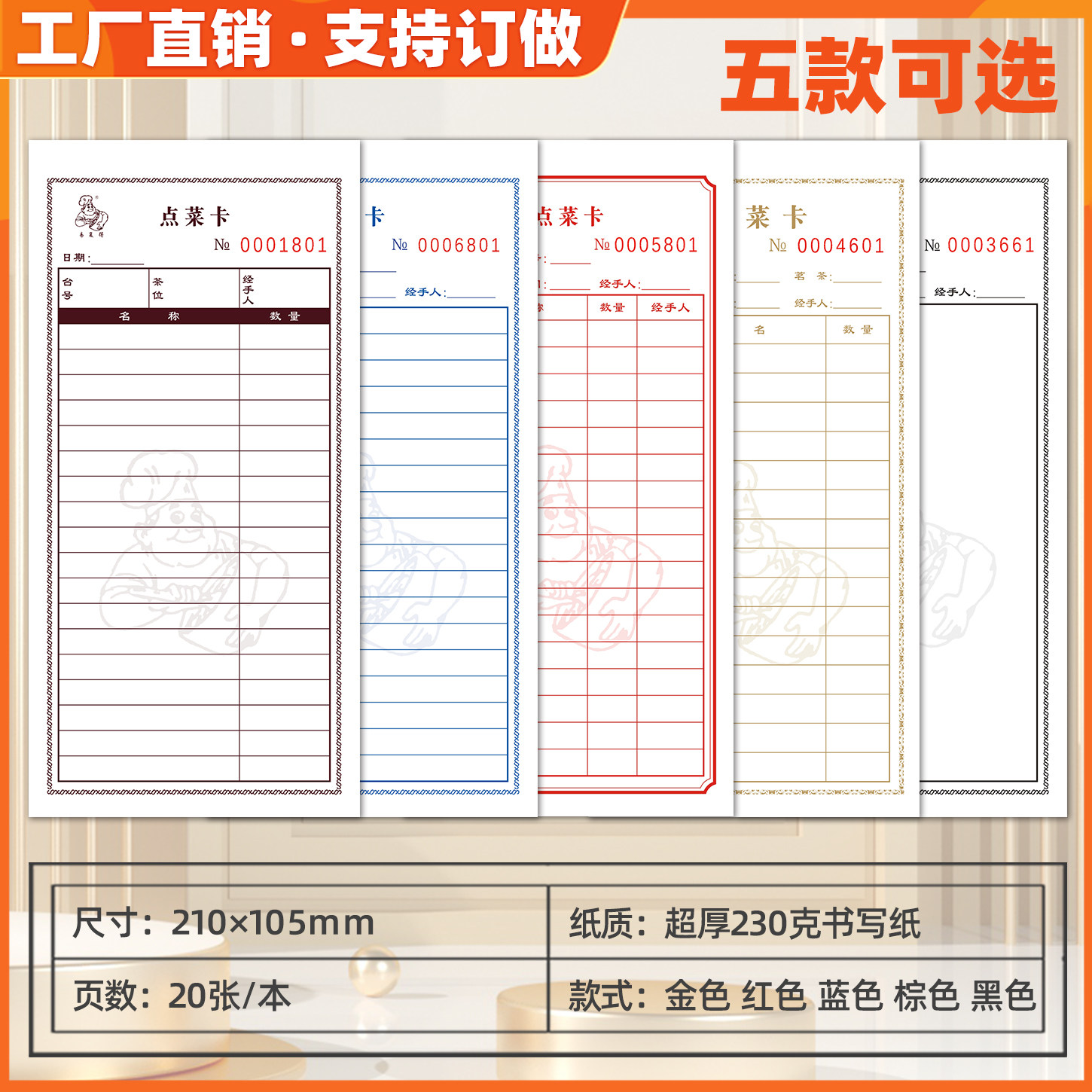 点菜卡超厚230克纸单头点菜单餐饮写餐单点菜纸食品记录卡消费卡