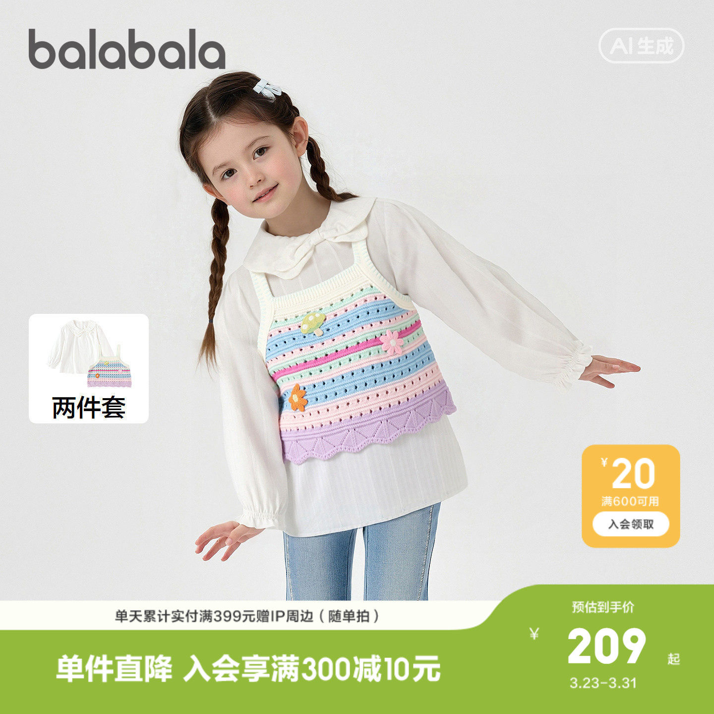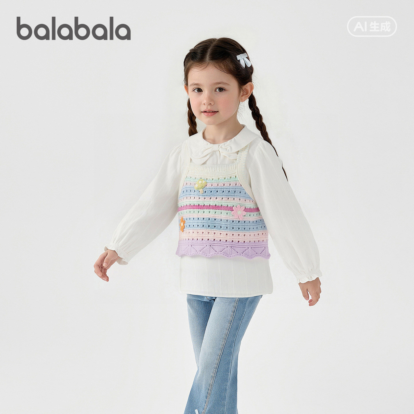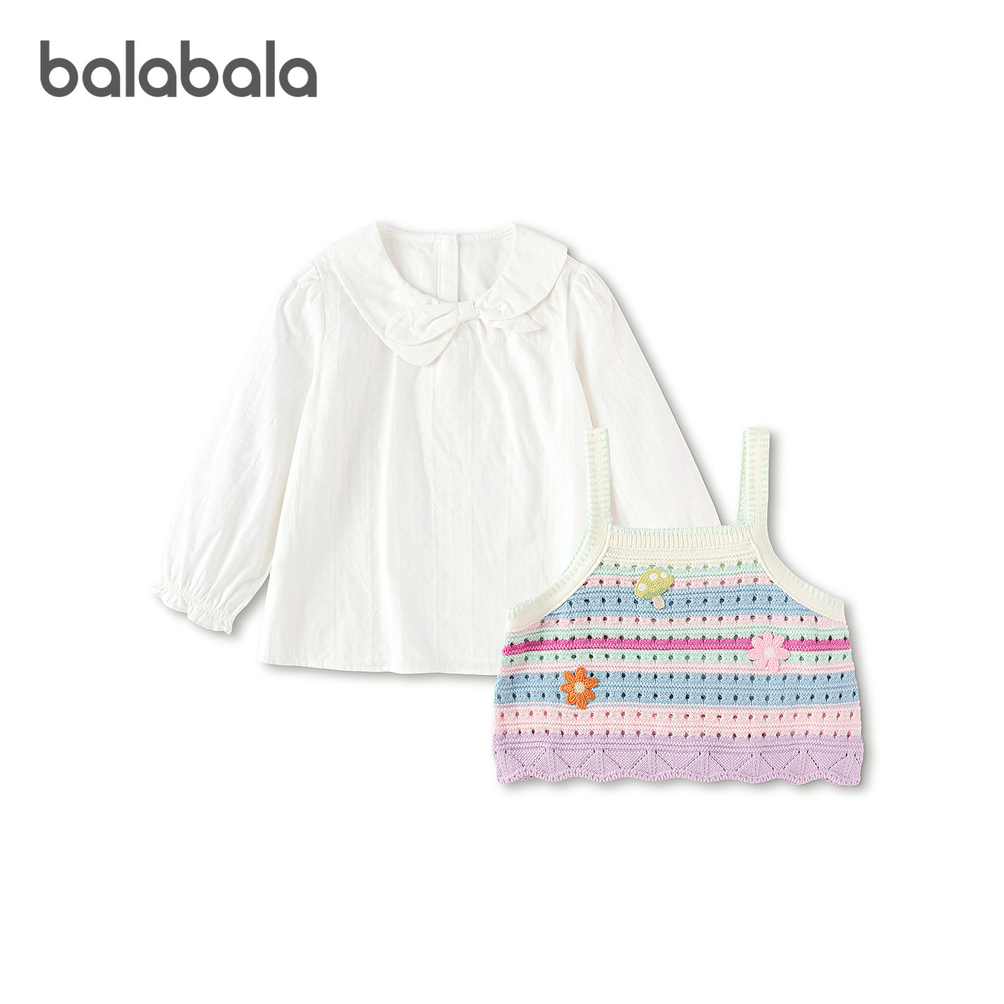 【商场同款】巴拉巴拉儿童长袖衬衫女童2026年新款春秋时尚两件套
