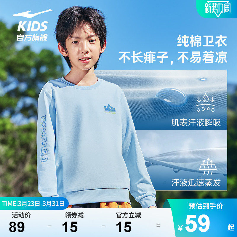 鸿星尔克童装男童纯棉卫衣春季新款青少年运动长袖上衣儿童打底衫