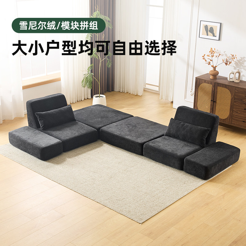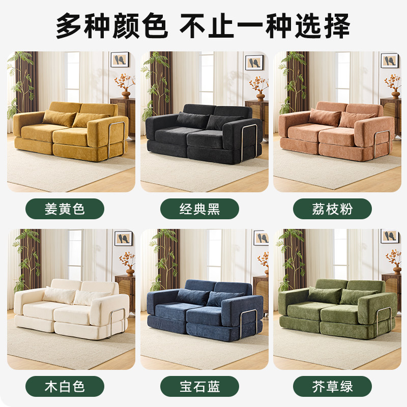 三梦中古风布艺沙发小户型折叠两用压缩复古单双人模块布丁沙发床