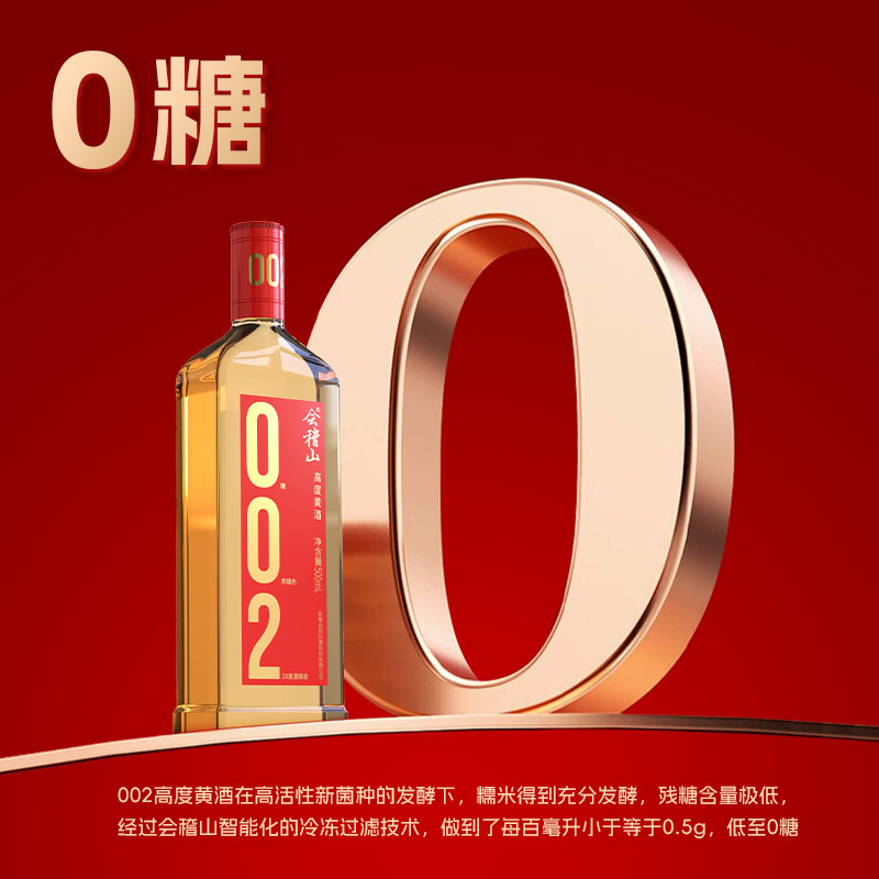 会稽山官方 绍兴黄酒002干型黄酒500ml*6瓶装0添加焦糖色高度冬酿