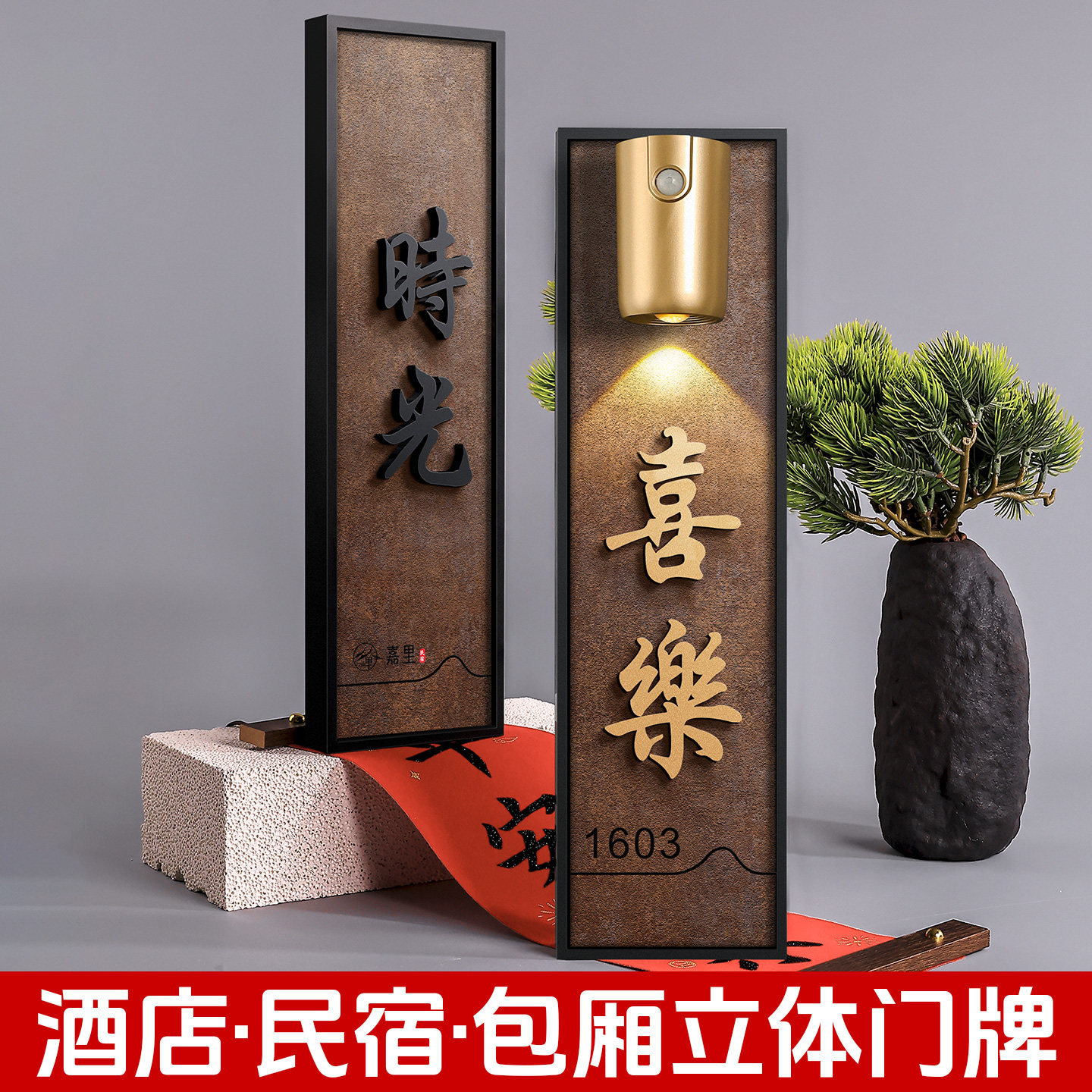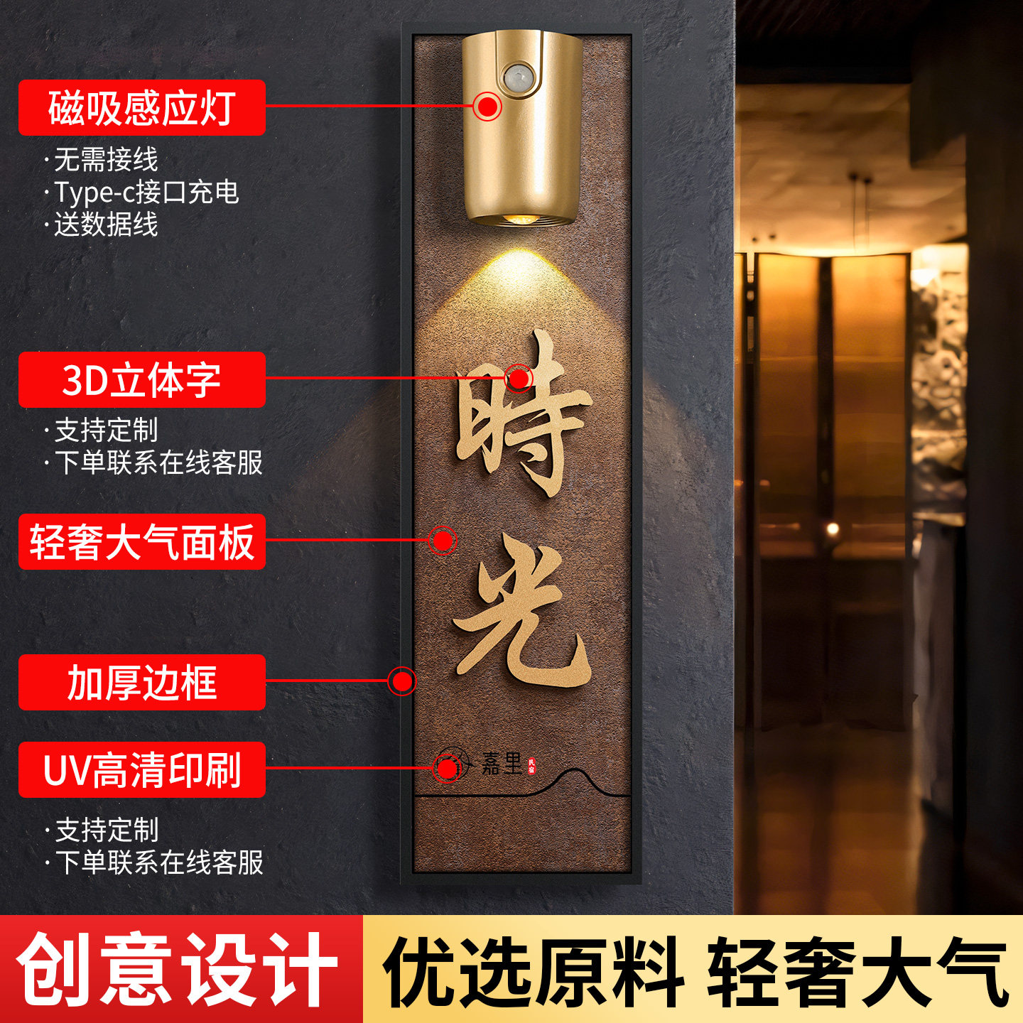 高档会所包厢门牌茶楼雅间宴会厅房间门口创意个性门贴挂牌工作室民宿包间仿古中式感应发光广告牌免打孔招牌