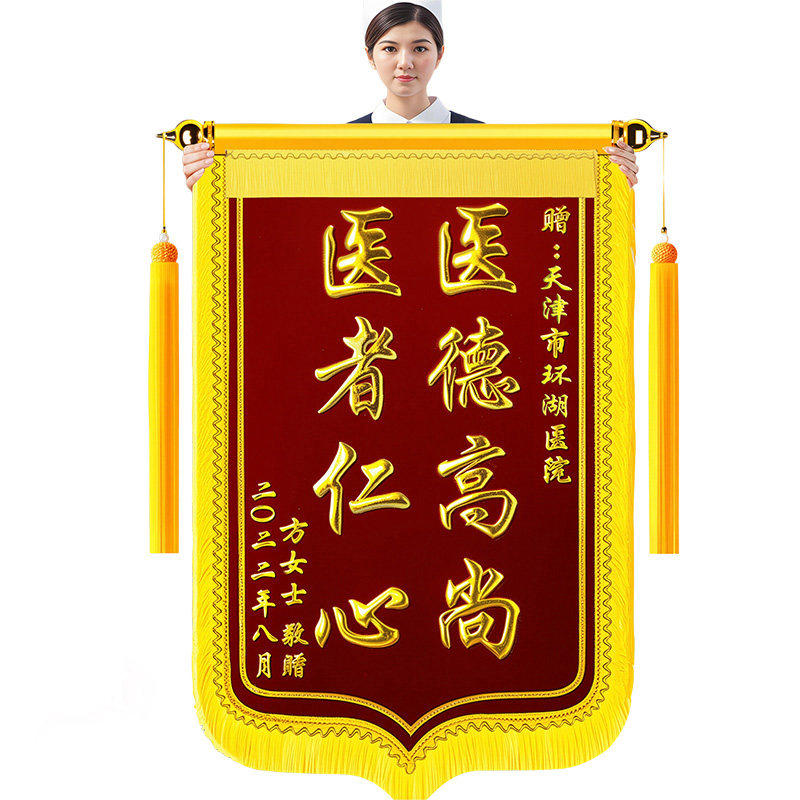 锦旗定做定制感谢服务赠送幼儿园老师医生民警月嫂生日搞笑物业装修美容院驾校教练高档金丝绒旌旗订做制作