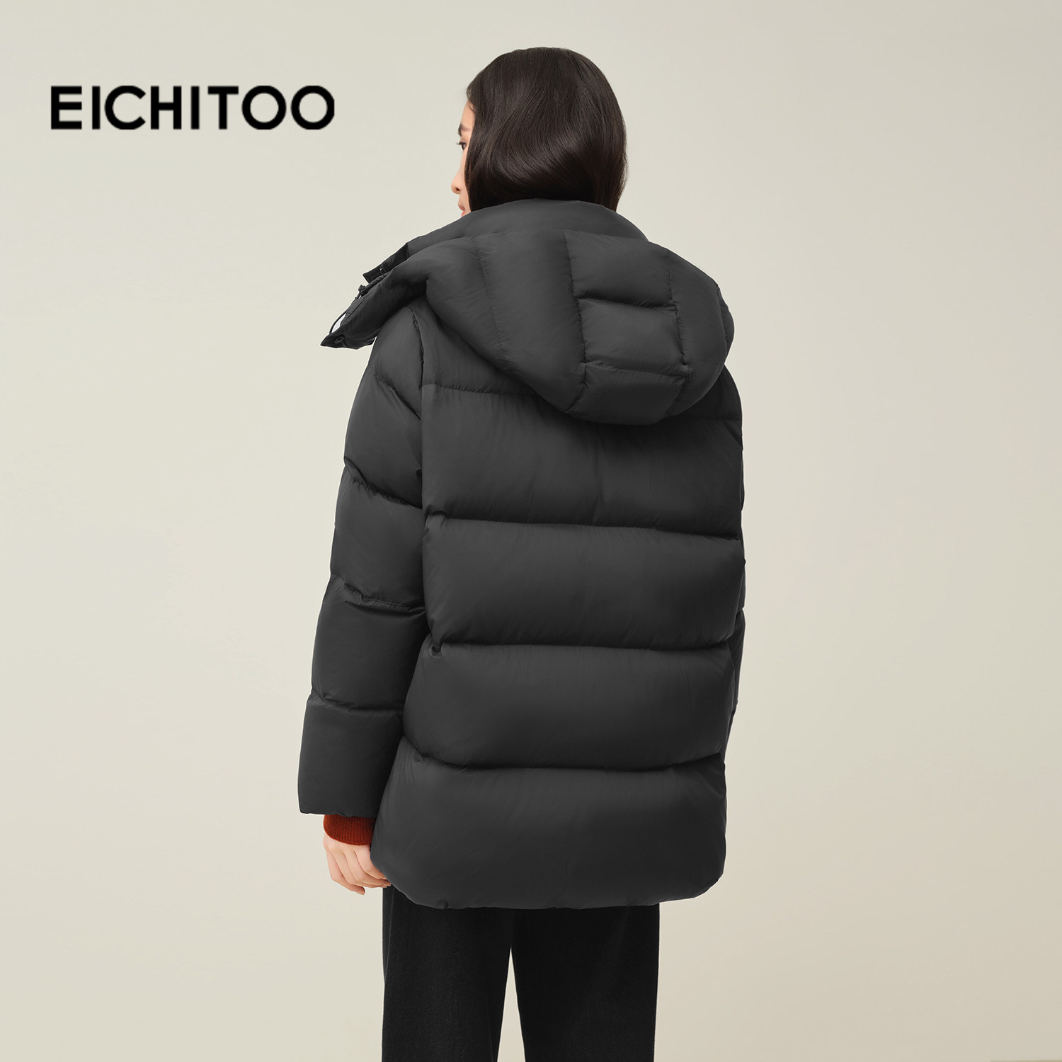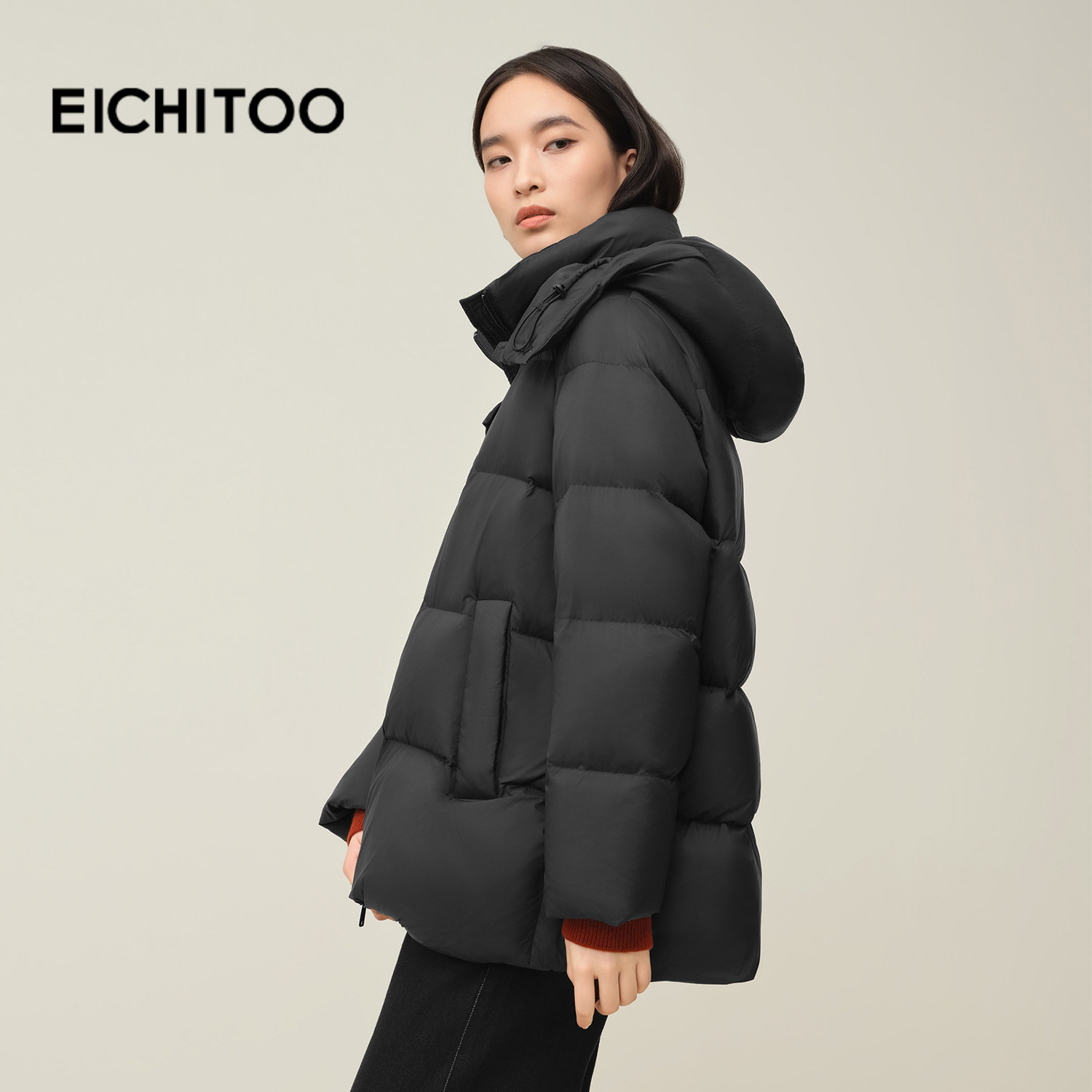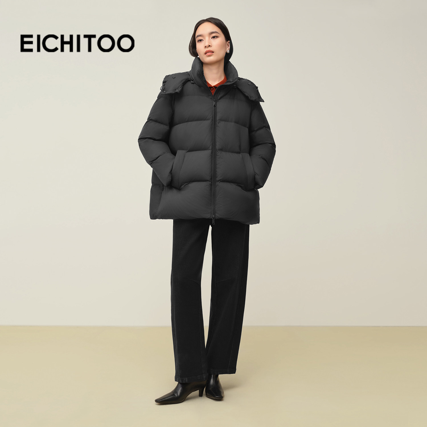 爱居兔简约立领连帽羽绒服女2025年冬季新款时尚宽松廓形保暖外套