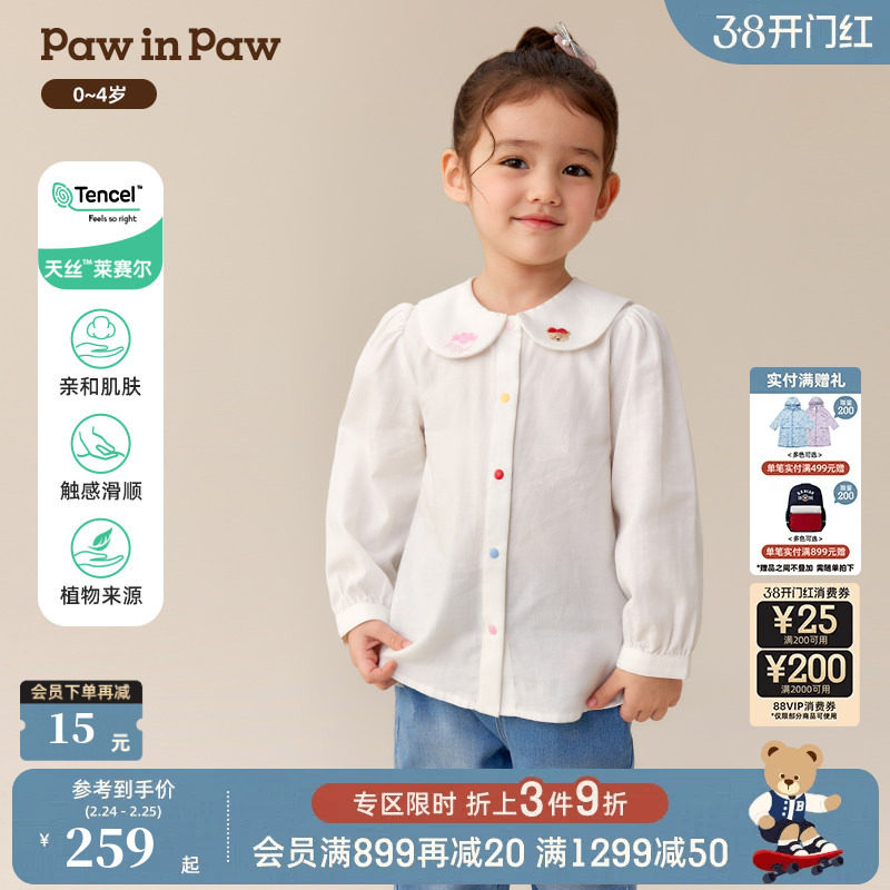 【天丝】PawinPaw卡通小熊童装25年秋季新款女宝宝长袖衬衫可爱