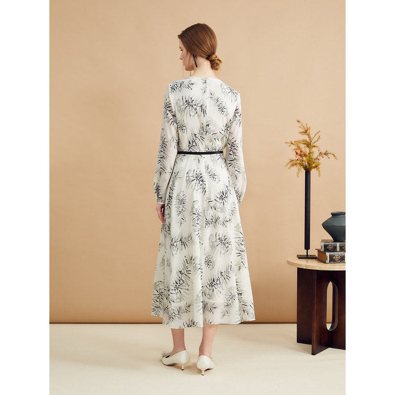 【真丝系列】YINER音儿秋季法式高级感艺术印花弹力桑蚕丝连衣裙