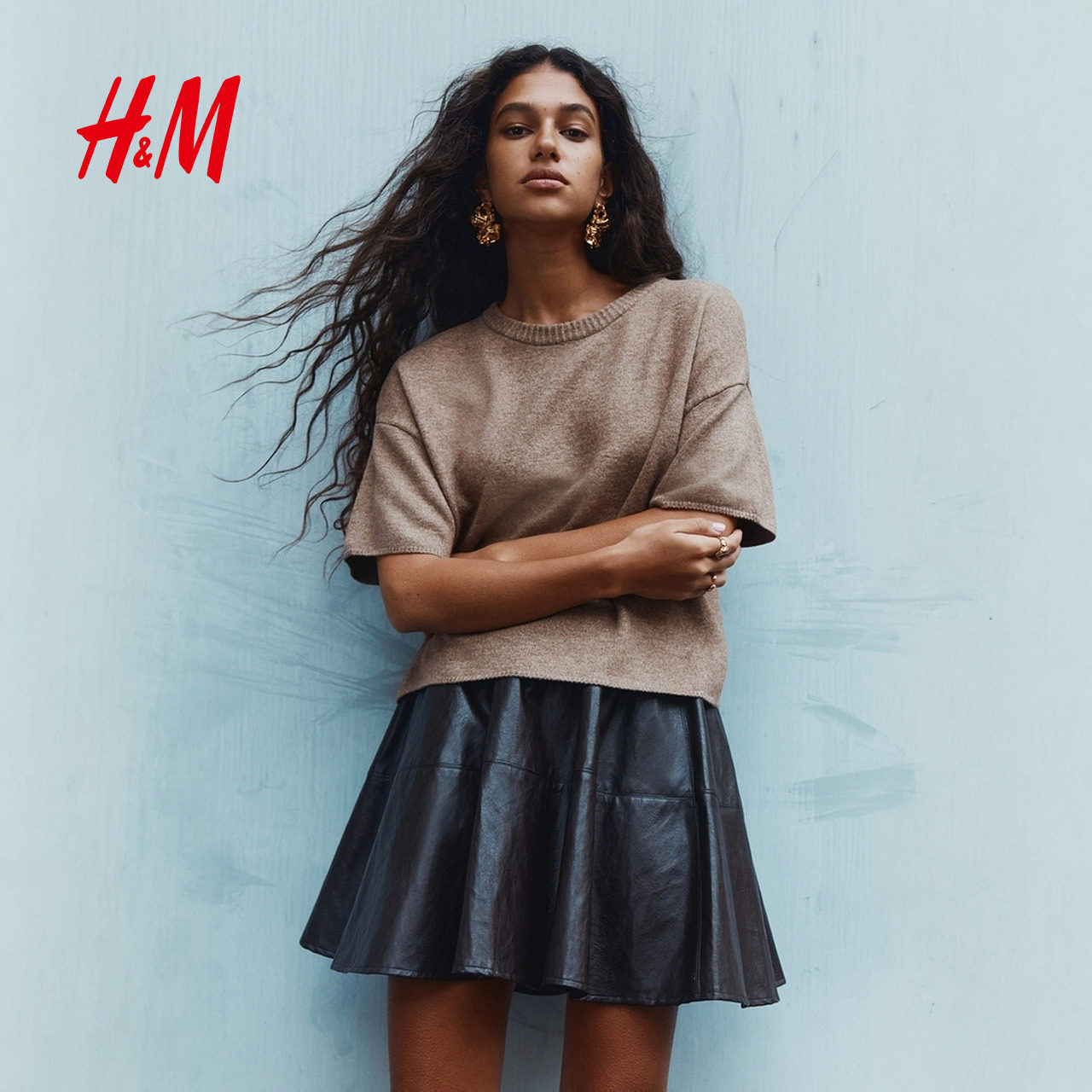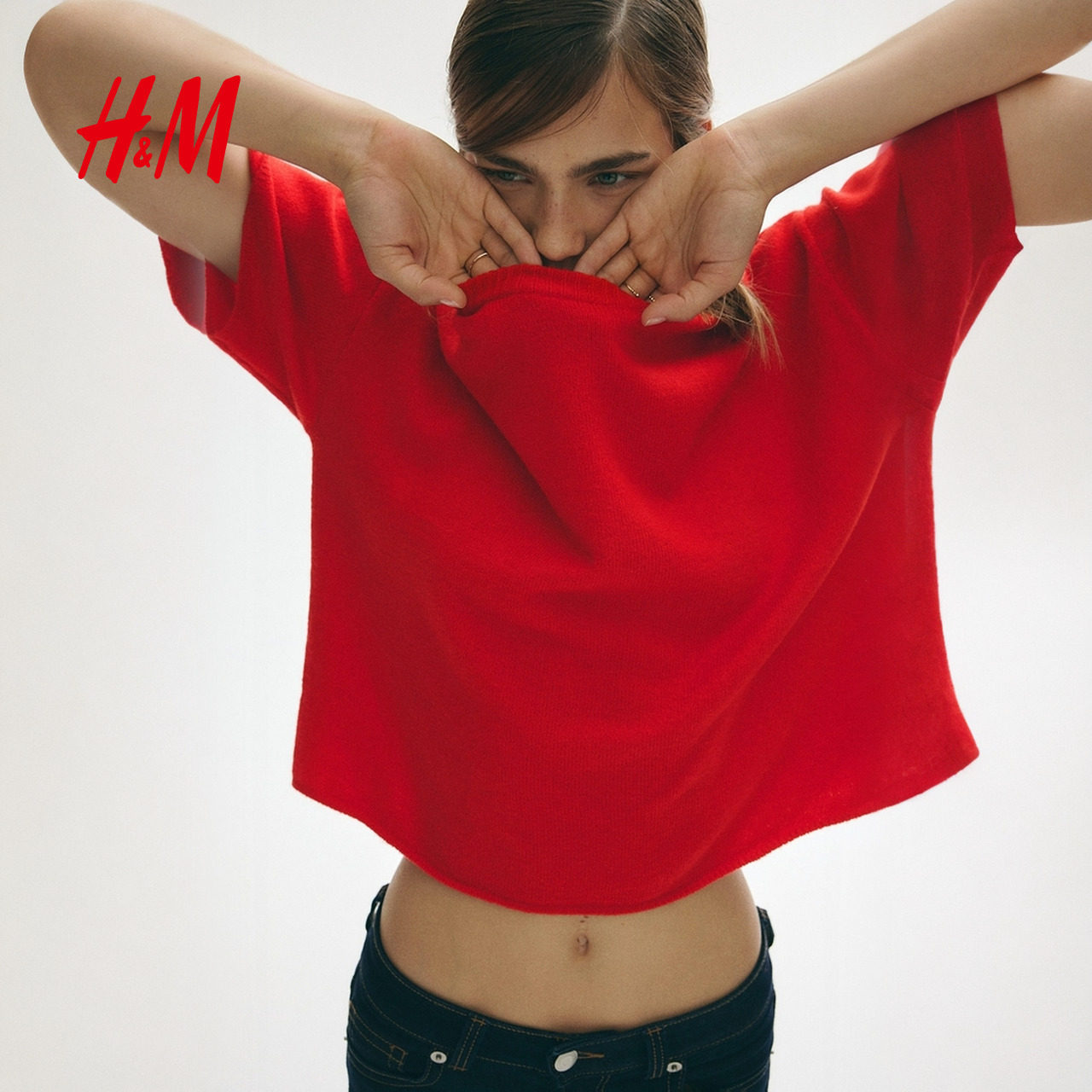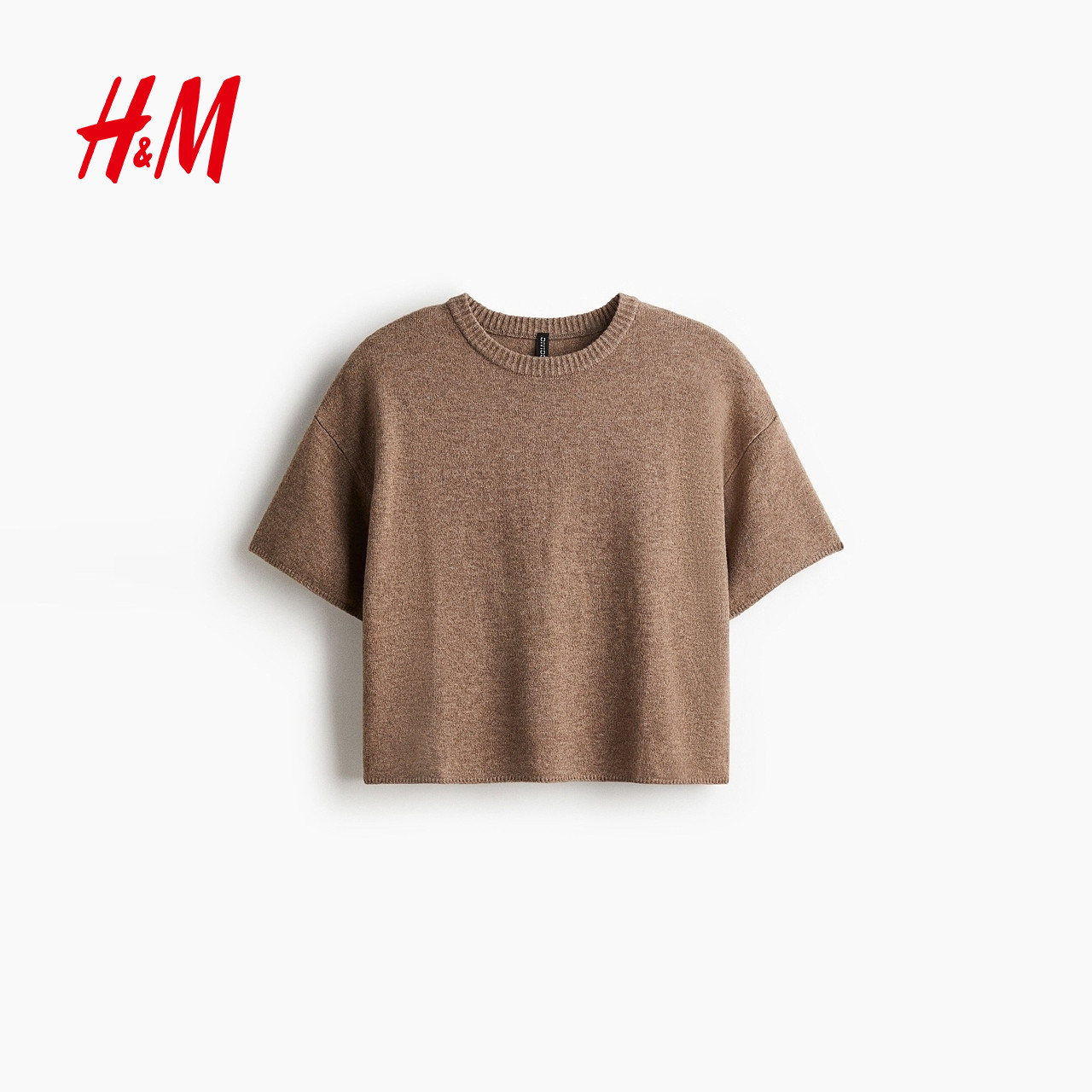 HM女装毛针织衫春季红色毛衣罗纹圆领亮套衫打底衫1300647