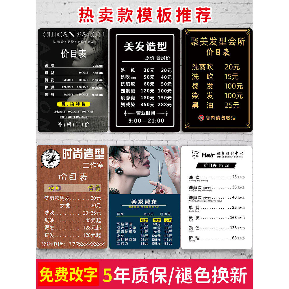 美业美发店价目表展示牌设计亚克力理发店价格表定制美容院发廊标价广告牌美甲养生桌球价位表墙贴提示牌订做