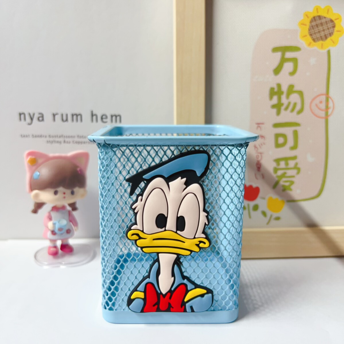 新款卡通可爱机器猫创意铁艺笔筒圆笔筒方笔筒学生办公室收纳桶