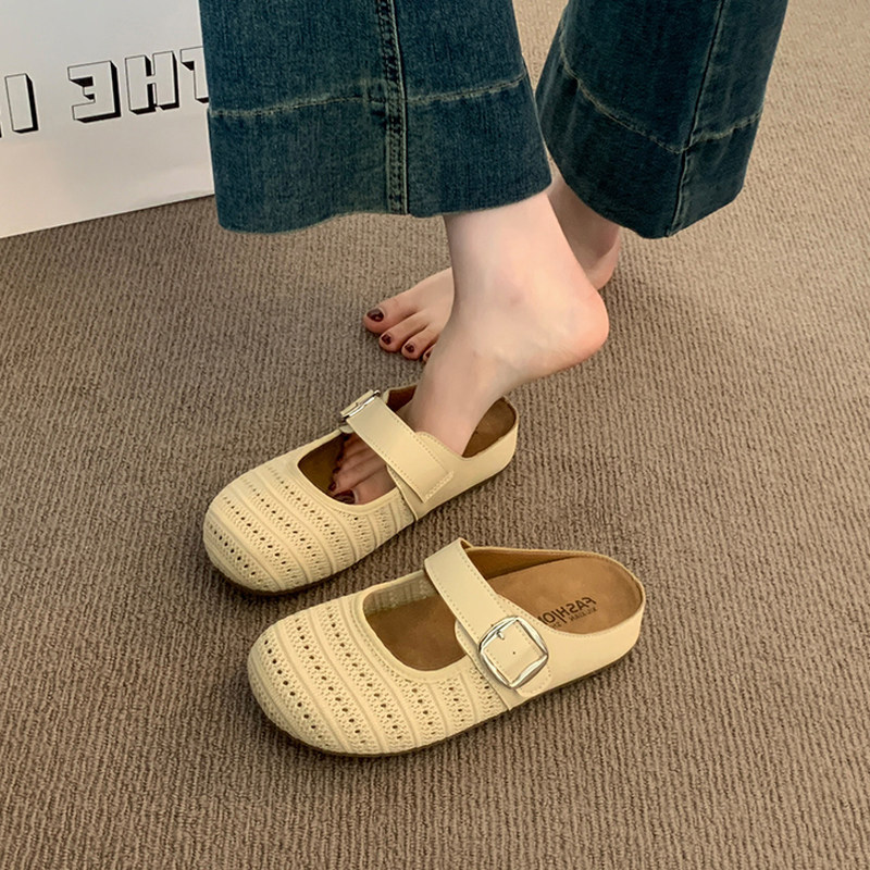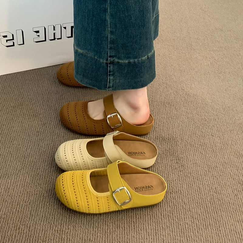 真皮包头穆勒鞋女半拖2025新款一脚蹬软面懒人平底拖鞋女夏外穿