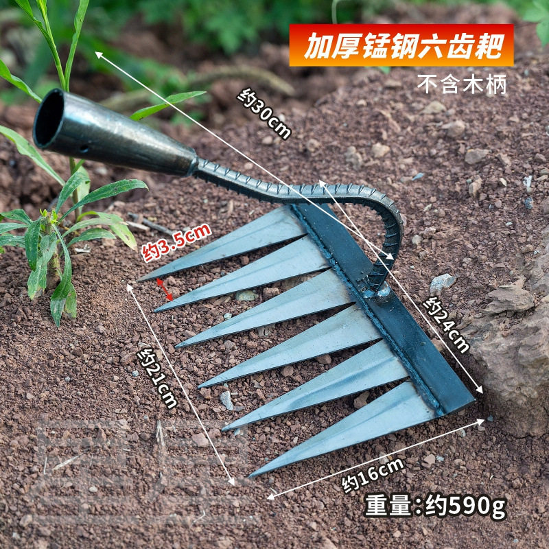 除草松土耙子农用工具六齿锄头迷你锰钢耙子开荒松土加厚钉耙