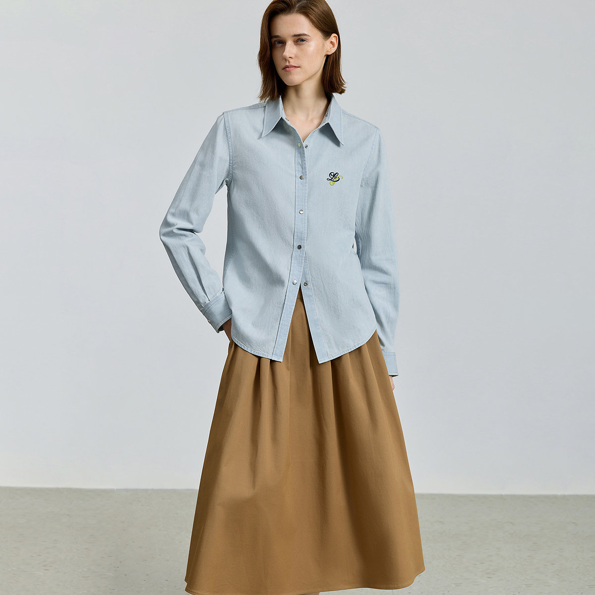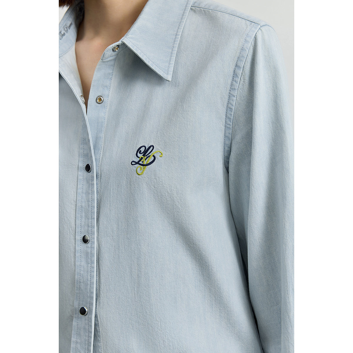 【商场同款】LILY2025新款纯棉休闲通勤水洗浅色牛仔衬衫外套女