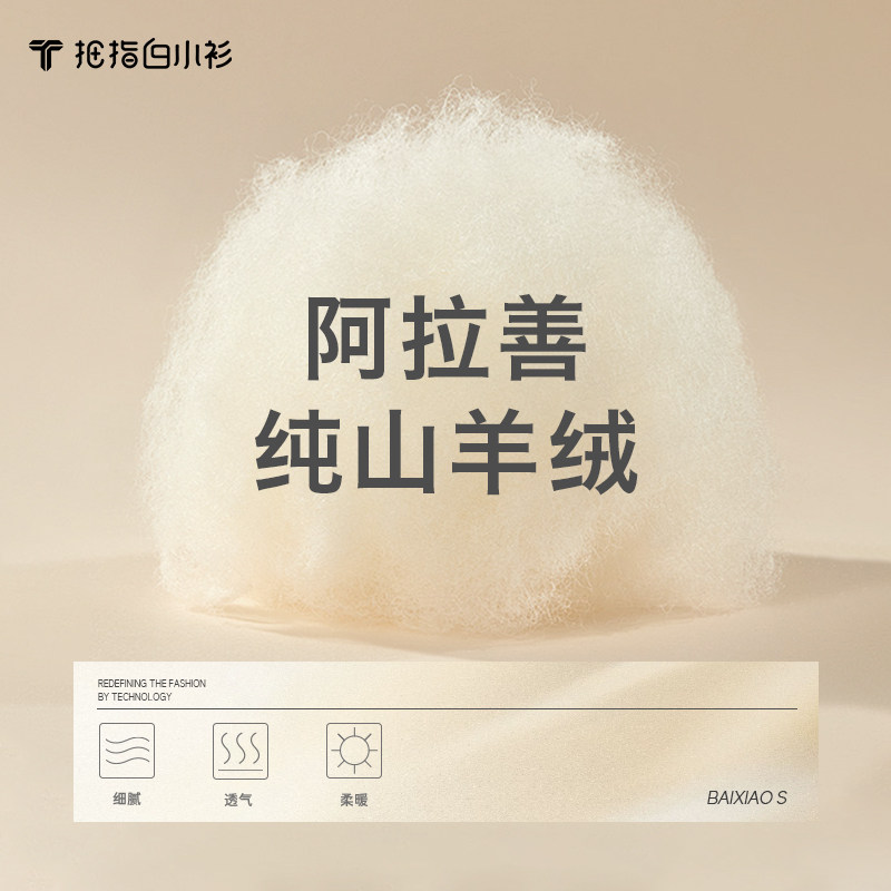 拇指白小T羊绒小高领长袖T恤男2025春秋季款舒适保暖上衣长袖套衫