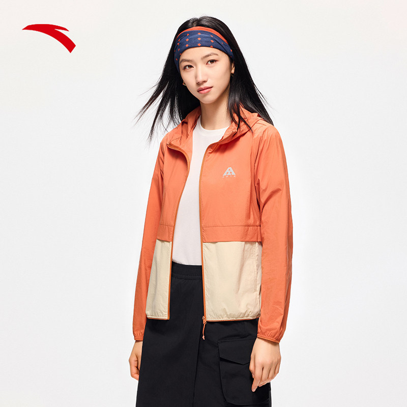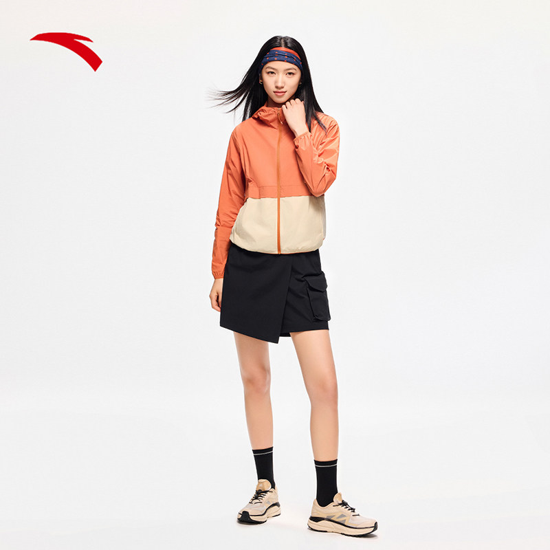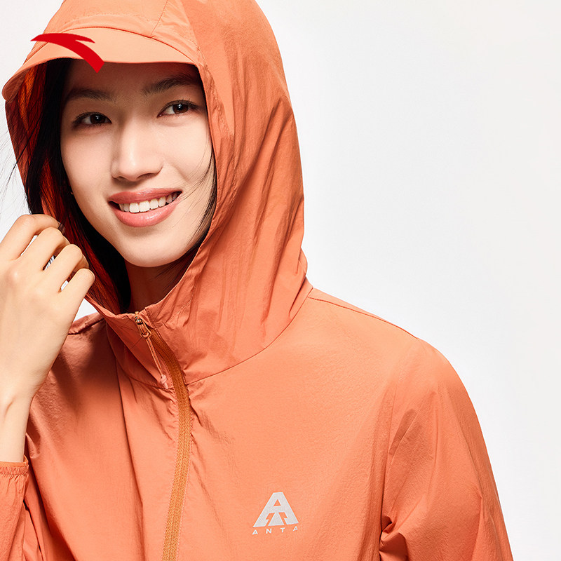 安踏轻壳防泼水防晒衣女秋冬季薄款梭织连帽运动外套时尚百搭女装