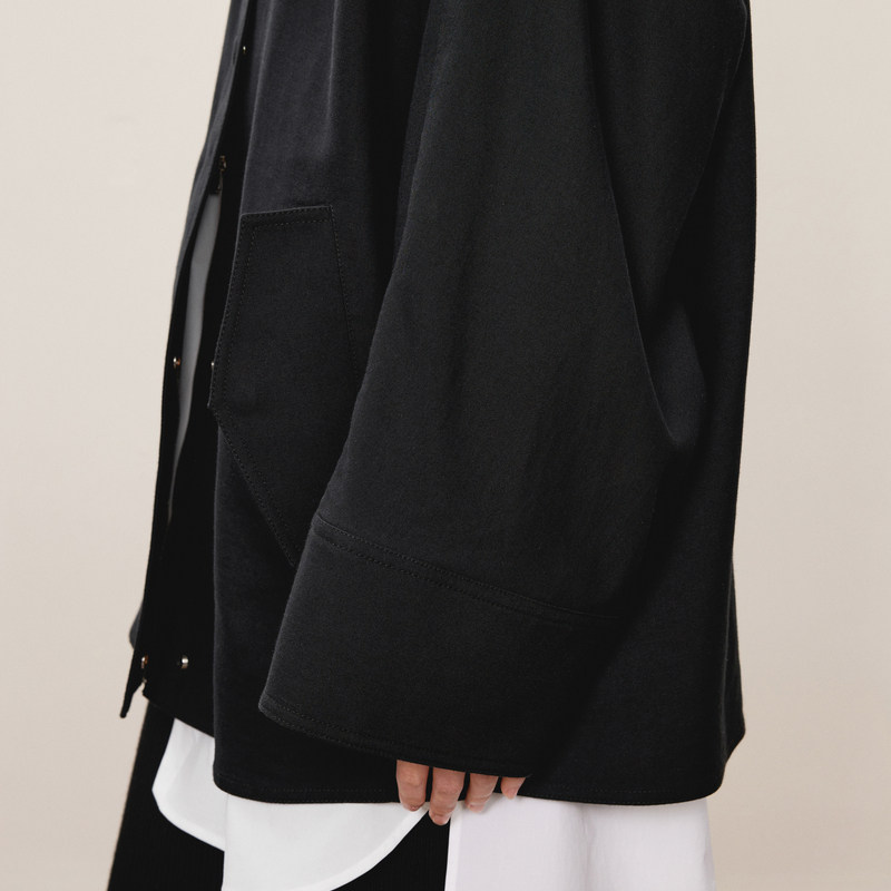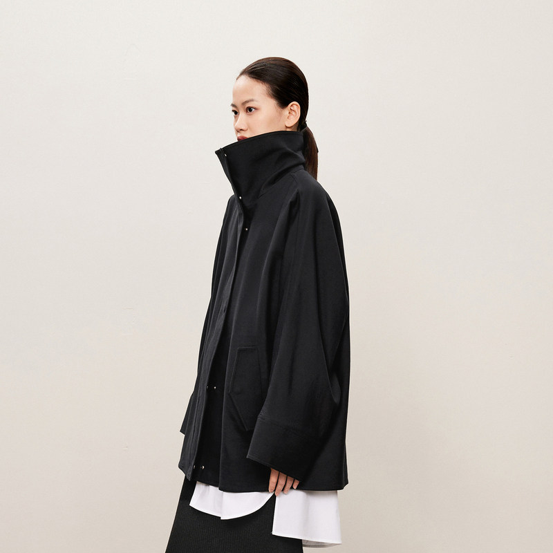 LESS春秋立领黑色夹克女宽松挺阔廓形A版休闲工装外套2O8613570