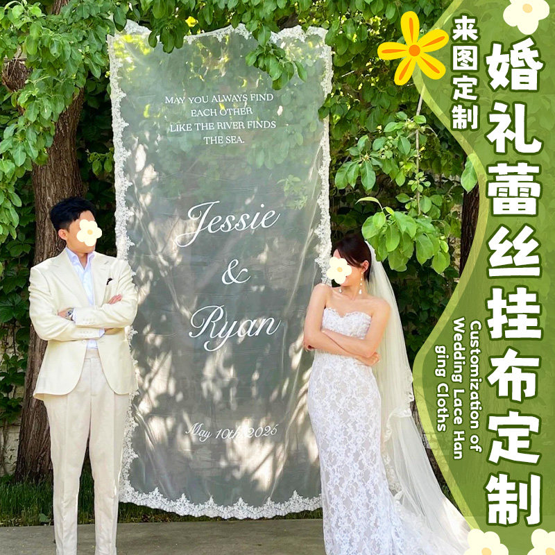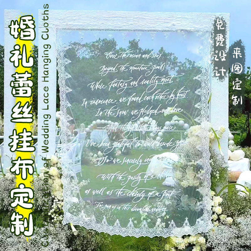 婚礼蕾丝挂布定制迎宾布置网纱背景布装饰条幅设计拍照氛围布定做