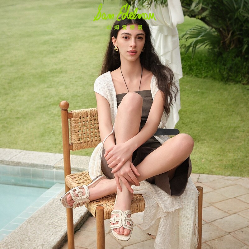 SAM EDELMAN山姆爱德曼26春新沙滩外穿一字凉拖鞋编织贝BAY TWIST