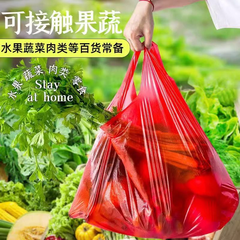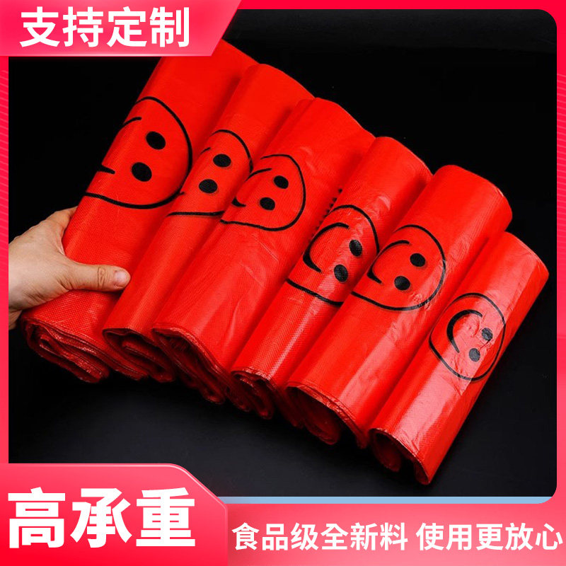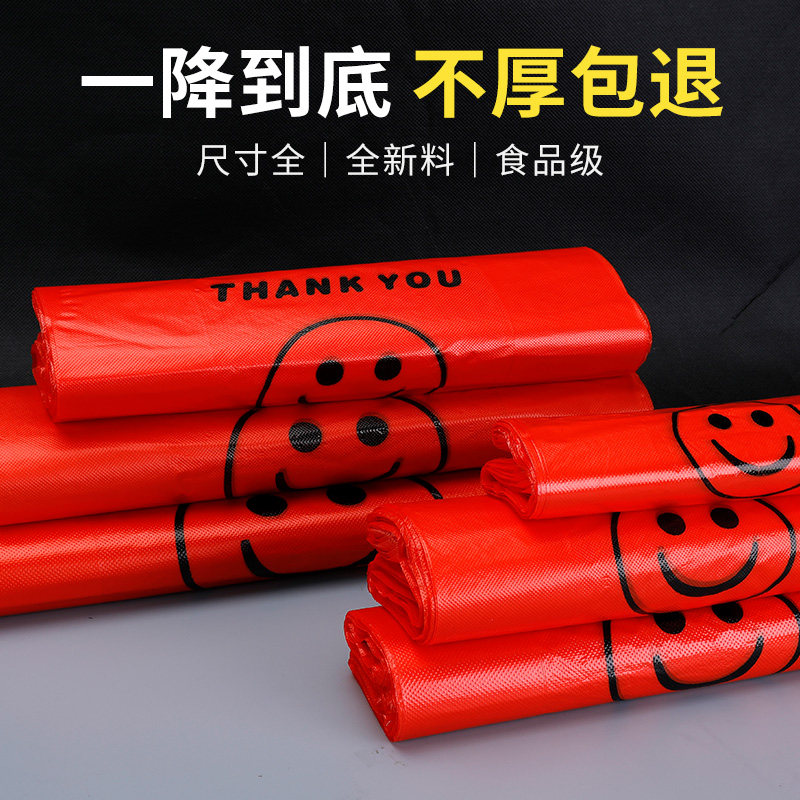 红色笑脸塑料袋大号一次性手提袋透明加厚背心袋购物袋方便袋批发