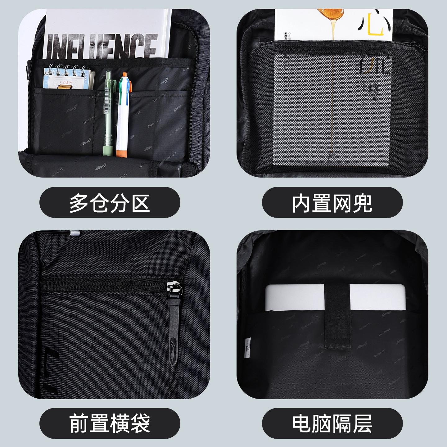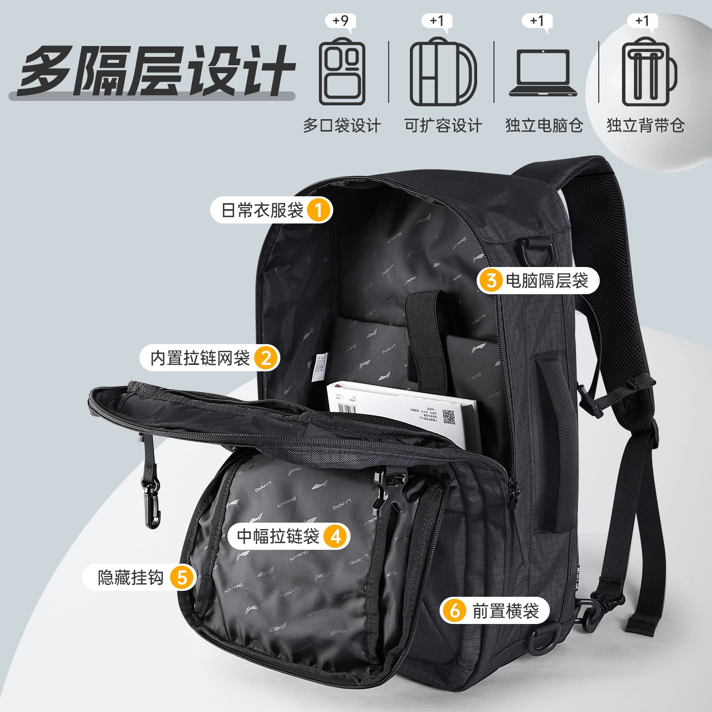 李宁大容量双肩包多功能旅行包出差斜挎包单肩背包通勤电脑包书包