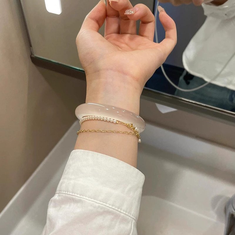 天然情人节透白月光玛瑙荔枝冻玉髓玉手镯马料女香槟正品高冰礼物