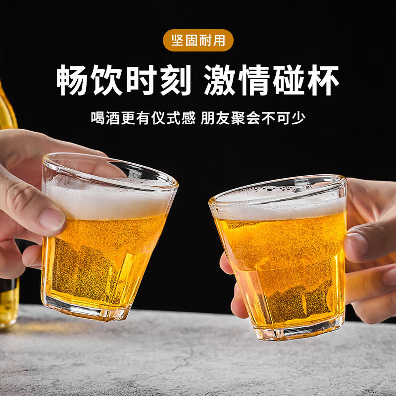 钢化玻璃杯商用啤酒杯KTV酒杯玻璃八角杯加厚玻璃杯家用 防摔茶杯