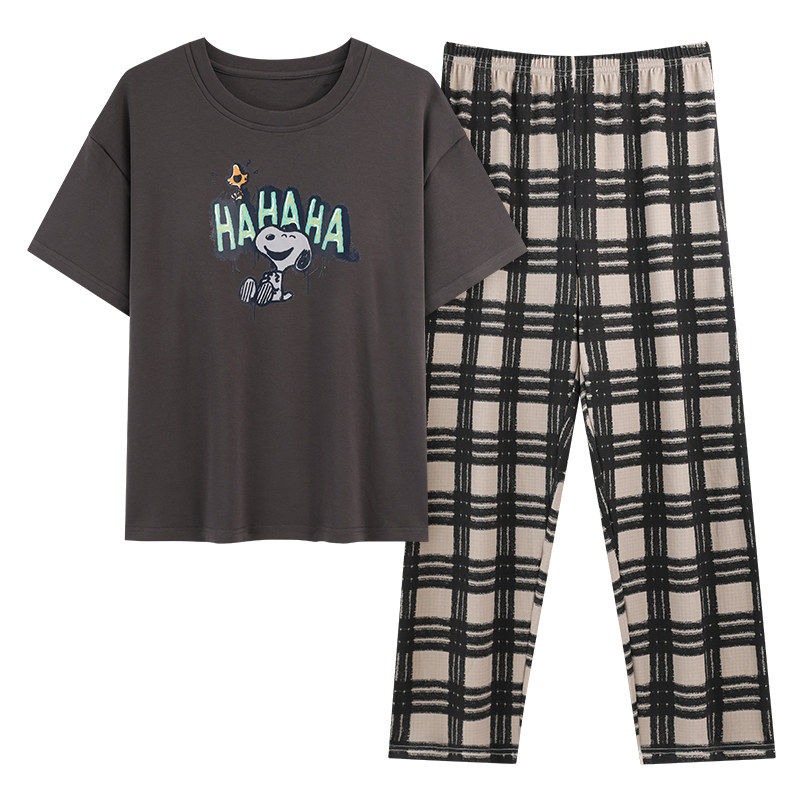 安比斯情侣睡衣舒适纯棉秋季女长袖男女同款休闲家居服套装可出门