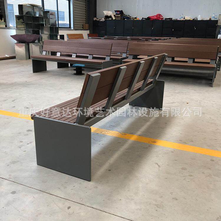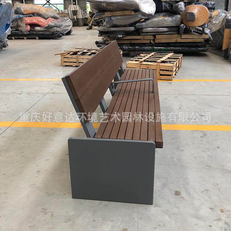 好意达户外景观金属长椅 多人休息靠背座椅 小区公园广场实木长凳